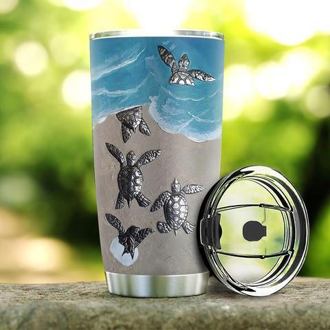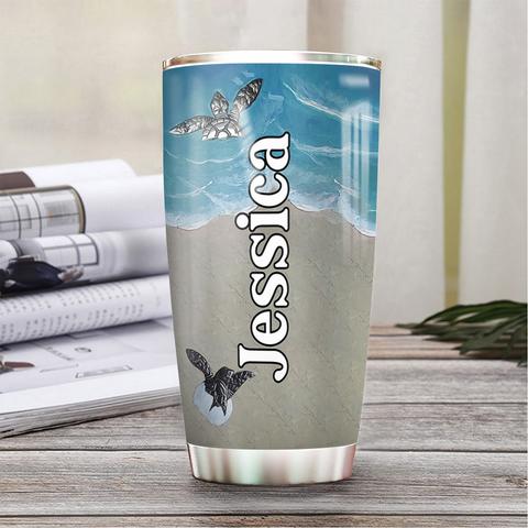 Personalized Turtle Painting Style Stainless Steel Tumbler, Personalized Tumblers, Tumbler Cups, Custom Tumblers