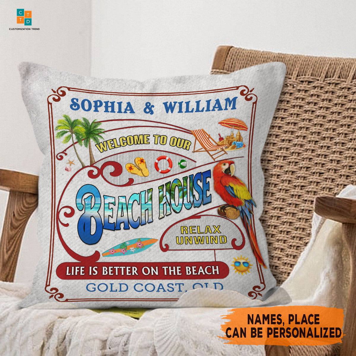 Personalized Welcome To Our Beach House Pillow , Custom Family Pillow