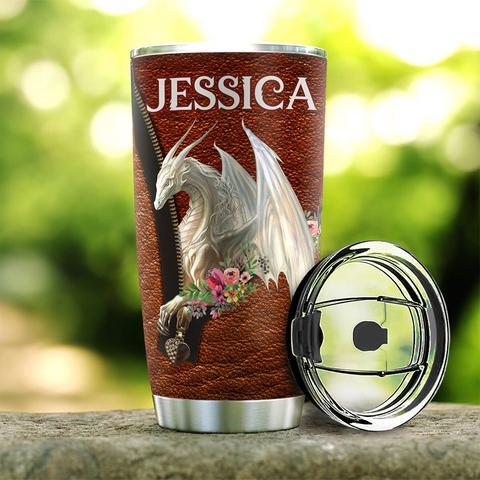 Personalized White Dragon Stainless Steel Tumbler, Personalized Tumblers, Tumbler Cups, Custom Tumblers