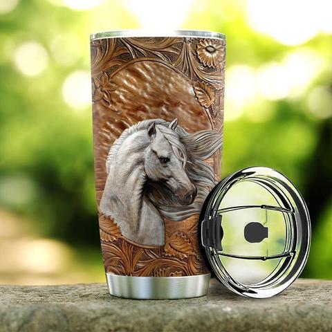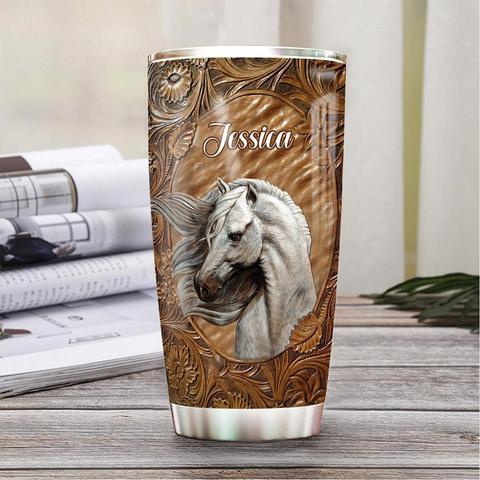 Personalized White Horse Leather Style Stainless Steel Tumbler, Personalized Tumblers, Tumbler Cups, Custom Tumblers