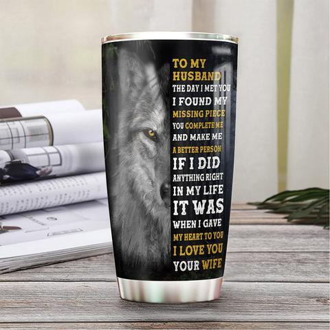 Personalized Wolf To My Husband Stainless Steel Tumbler, Personalized Tumblers, Tumbler Cups, Custom Tumblers