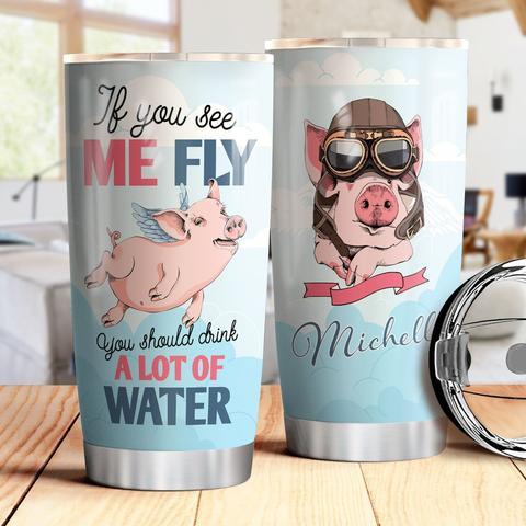Pig Flies Personalized Stainless Steel Tumbler, Personalized Tumblers, Tumbler Cups, Custom Tumblers