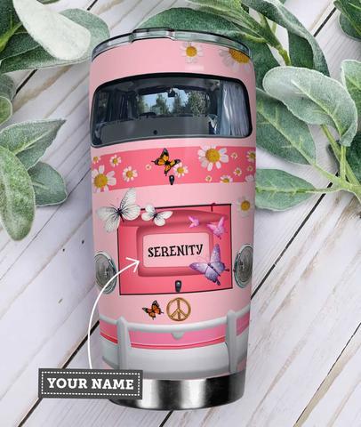 Pink Hippie Van Daisy Pig Personalized Kd2 Stainless Steel Tumbler, Personalized Tumblers, Tumbler Cups, Custom Tumblers