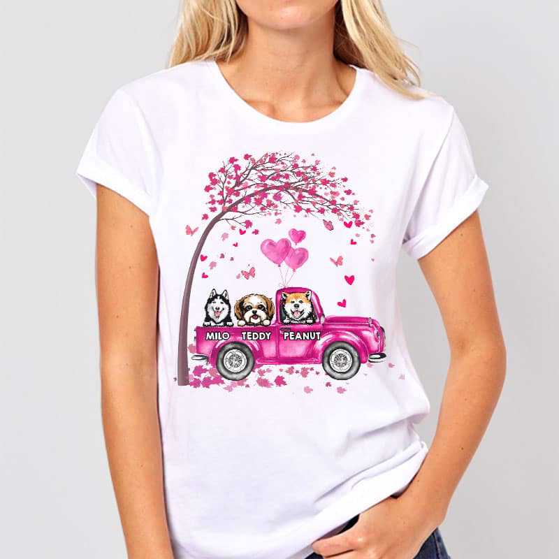 Pink Valentines Truck Peeking Dogs Personalized Shirt