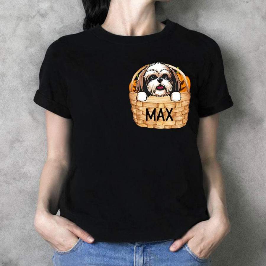 Pocket Custom T Shirts, Pumpkin Basket, Personalized Gifts for Dog Lovers