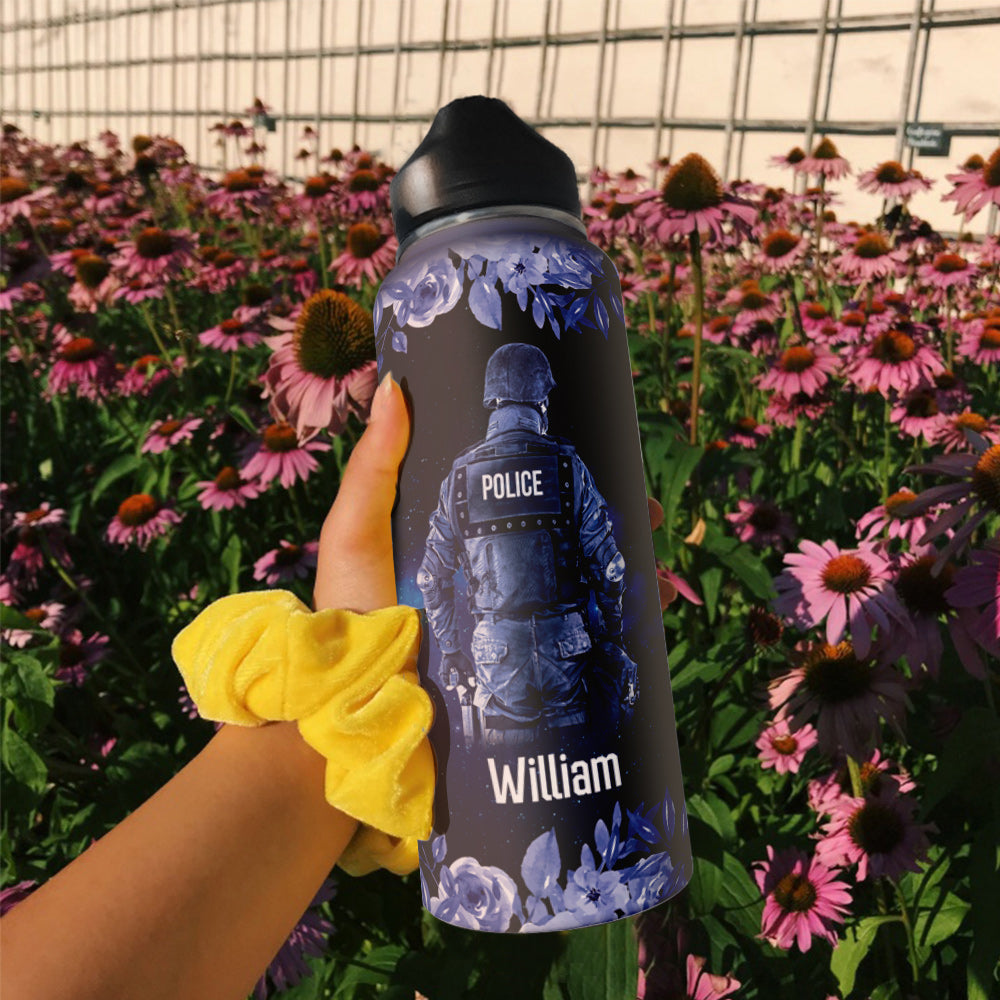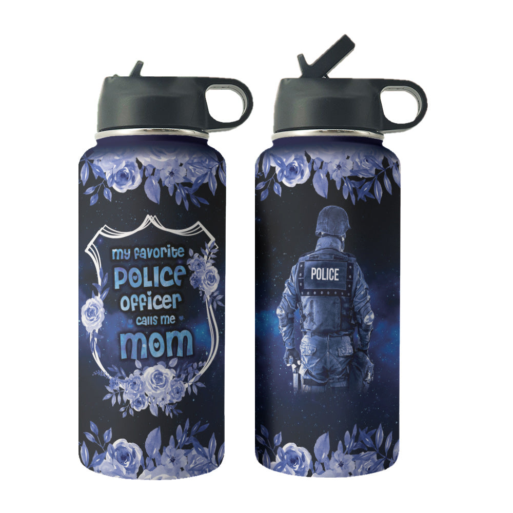 Police Mom Personalized Aarz2304011Z Stainless Steel Bottle With Straw Lid
