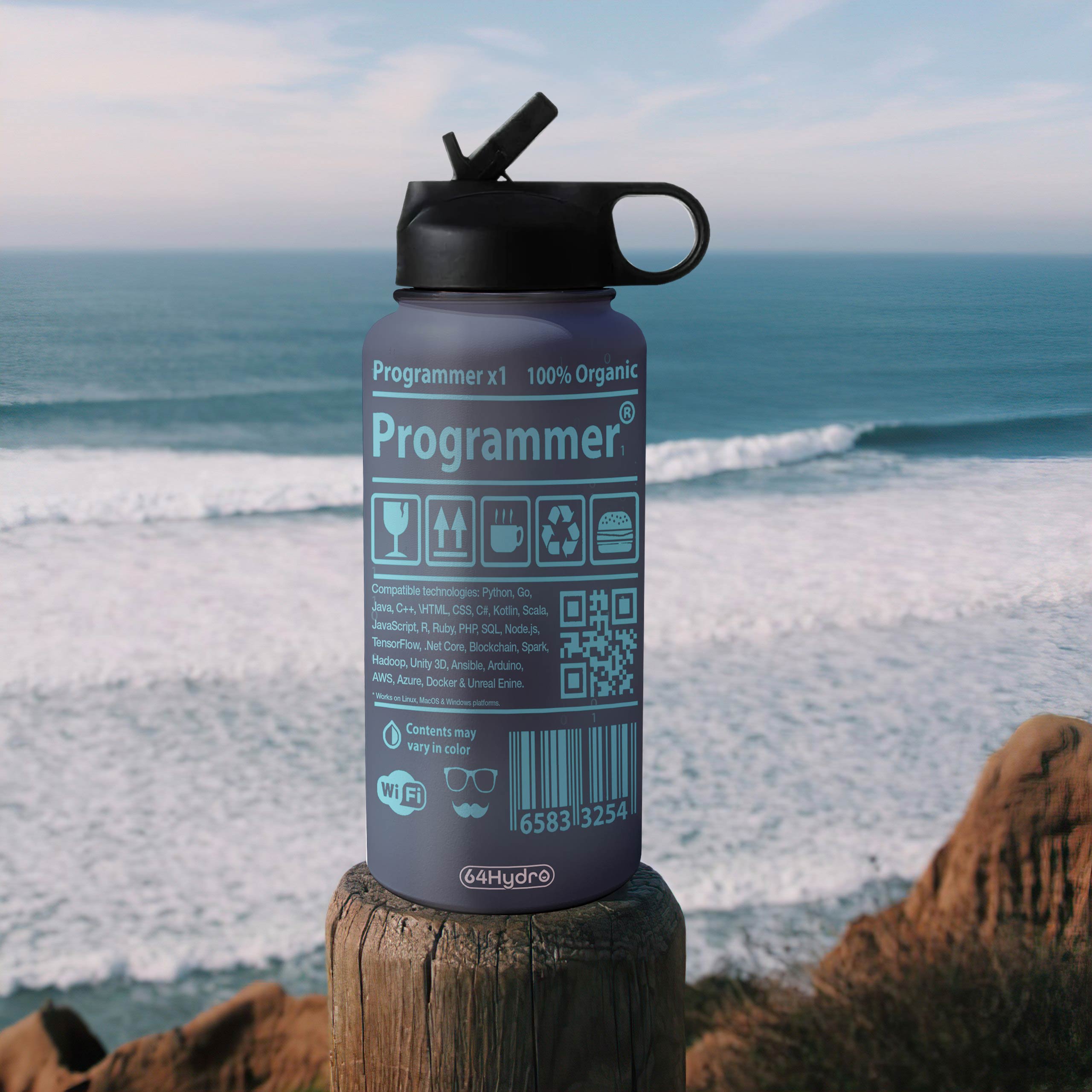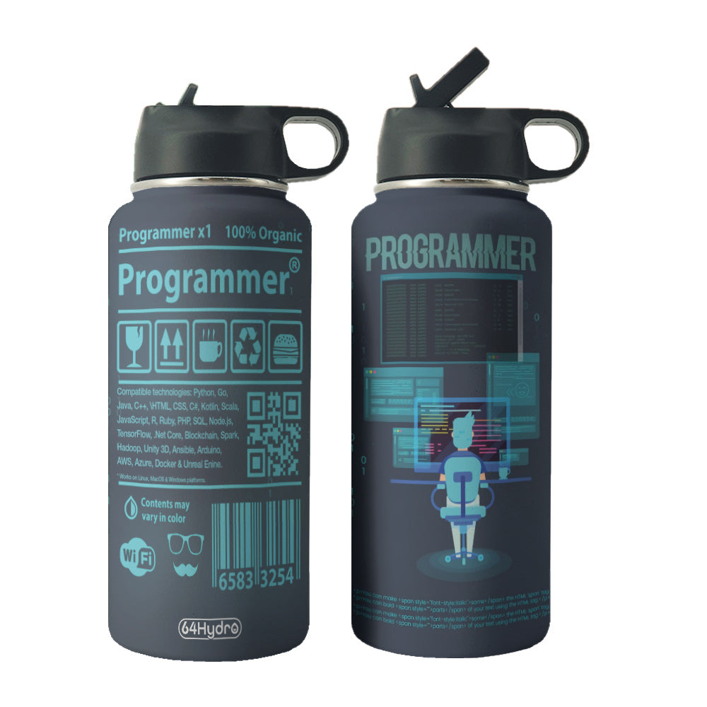 Programmer Label Personalized Hhs3110004 Stainless Steel Bottle With Straw Lid