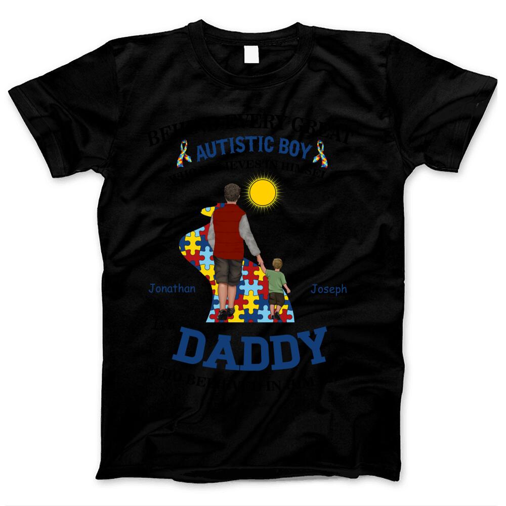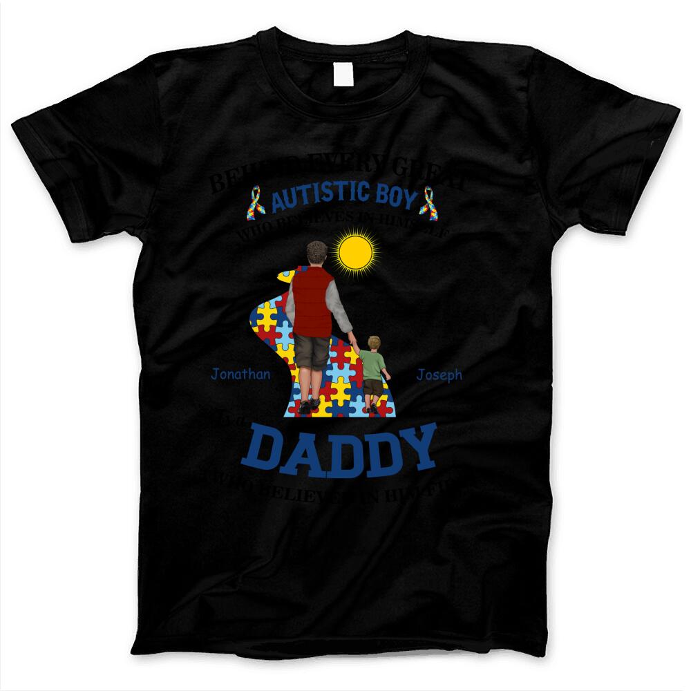 Proud Autism Dad Father And Son Autistic Boy Awareness Custom Style & Name Personalized T-shirt Gift For Dad