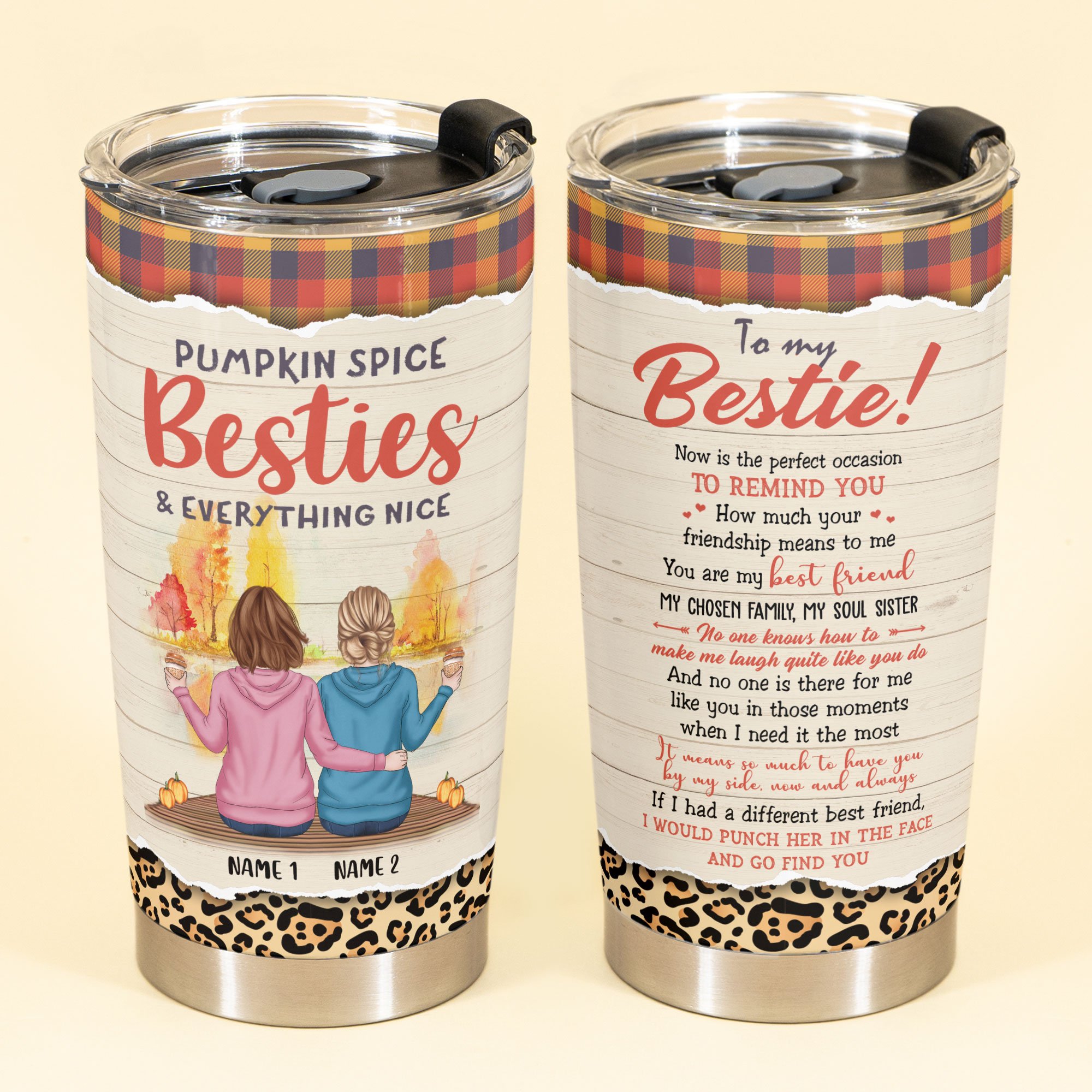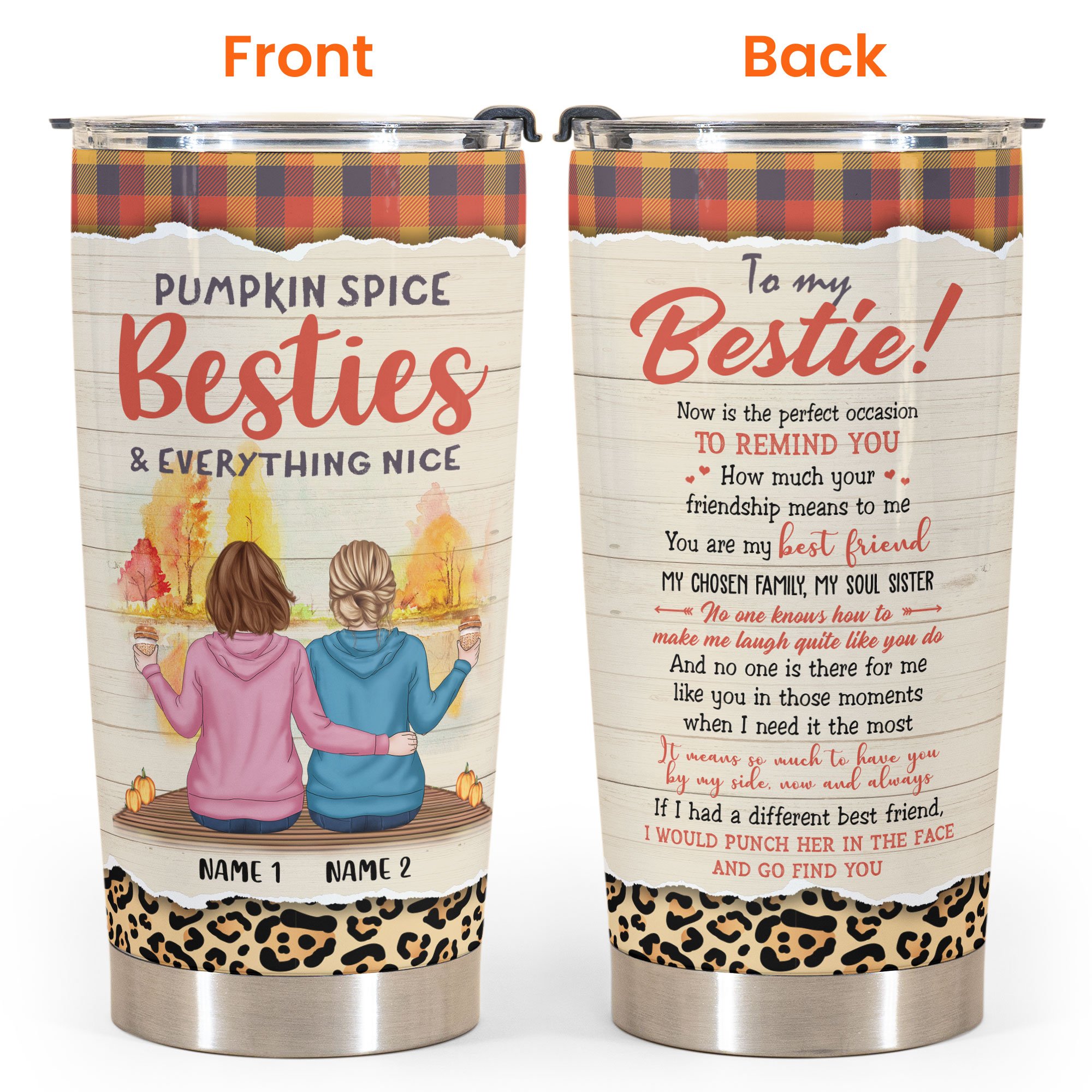 Pumpkin Spice Besties Chosen Family – Personalized Tumbler Cup – Fall Season Gift For Besties – Friends Hoodie Sitting