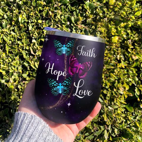 Purple Faith Hope Love Butterfly Personalized Wine Tumbler, Personalized Tumblers, Tumbler Cups, Custom Tumblers