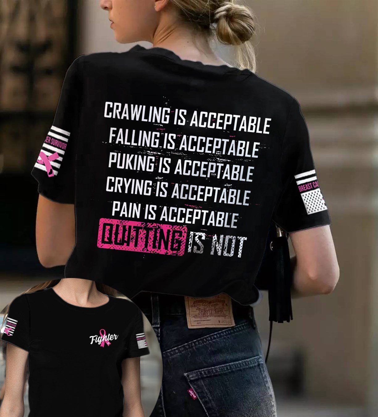 Quitting Is Not Breast Cancer Awareness All Over Print T-Shirt, Inspirational Breast Cancer Awareness Month Shirt