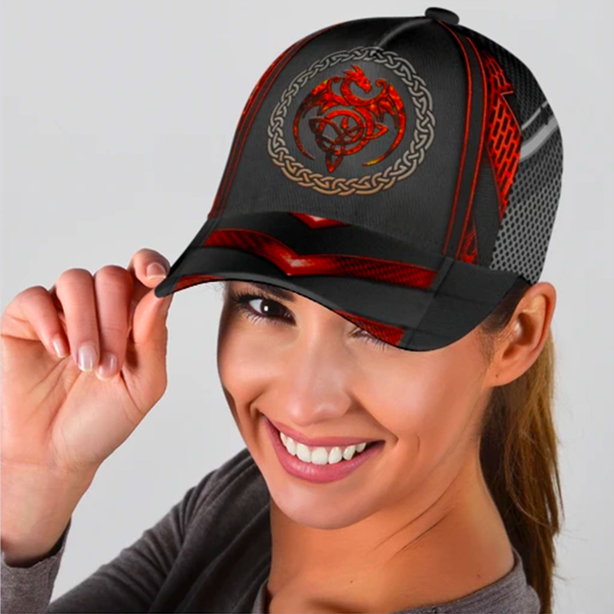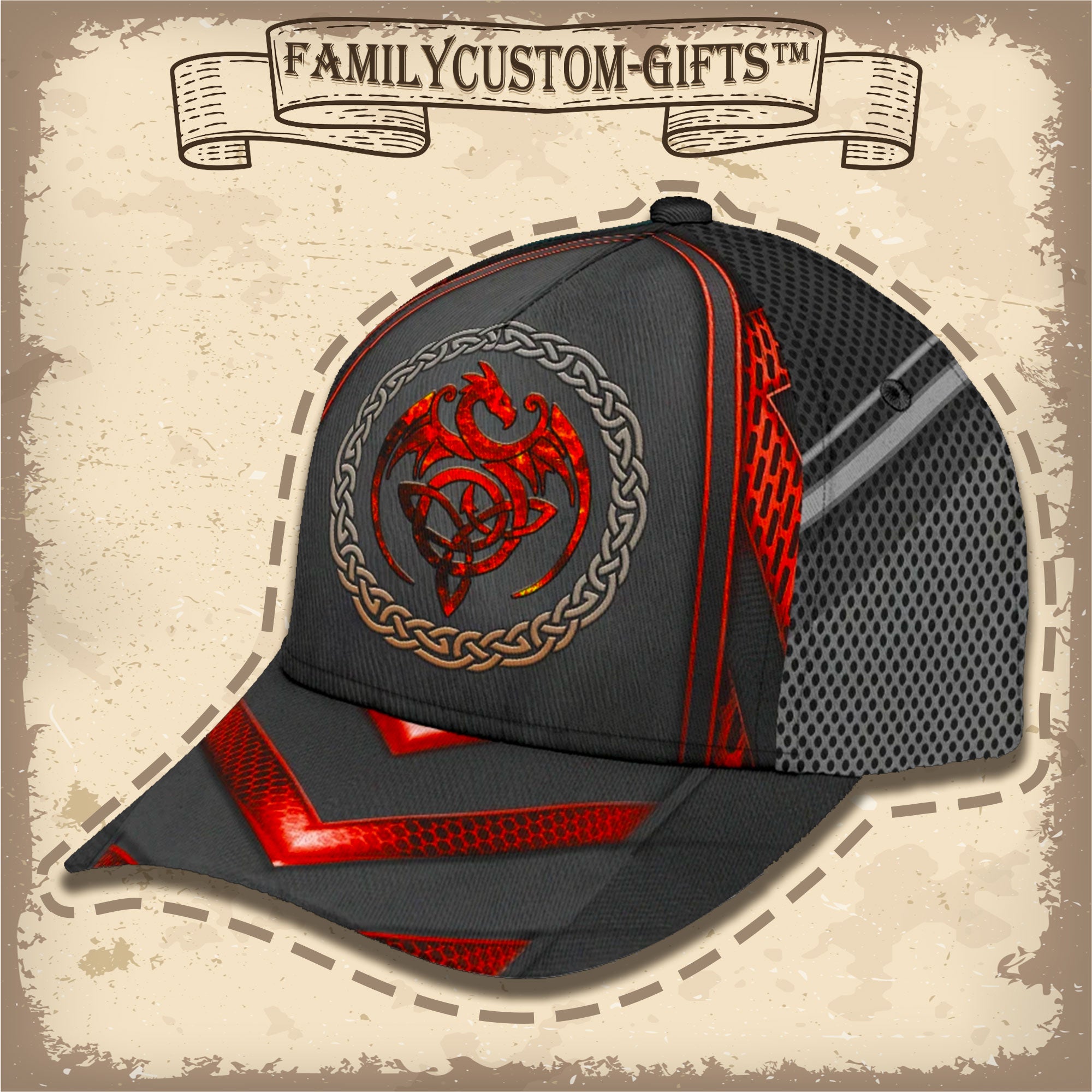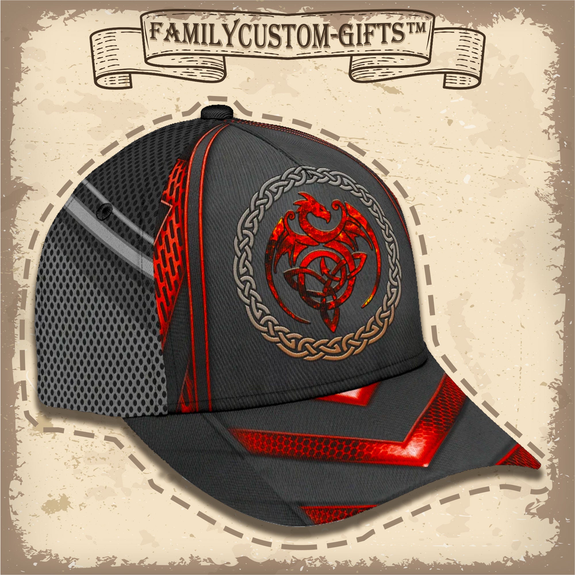 Red Celtic Dragon Custom Hats For Men & Women 3D Prints Personalized Baseball Caps