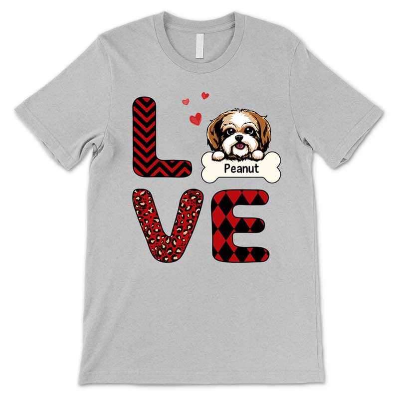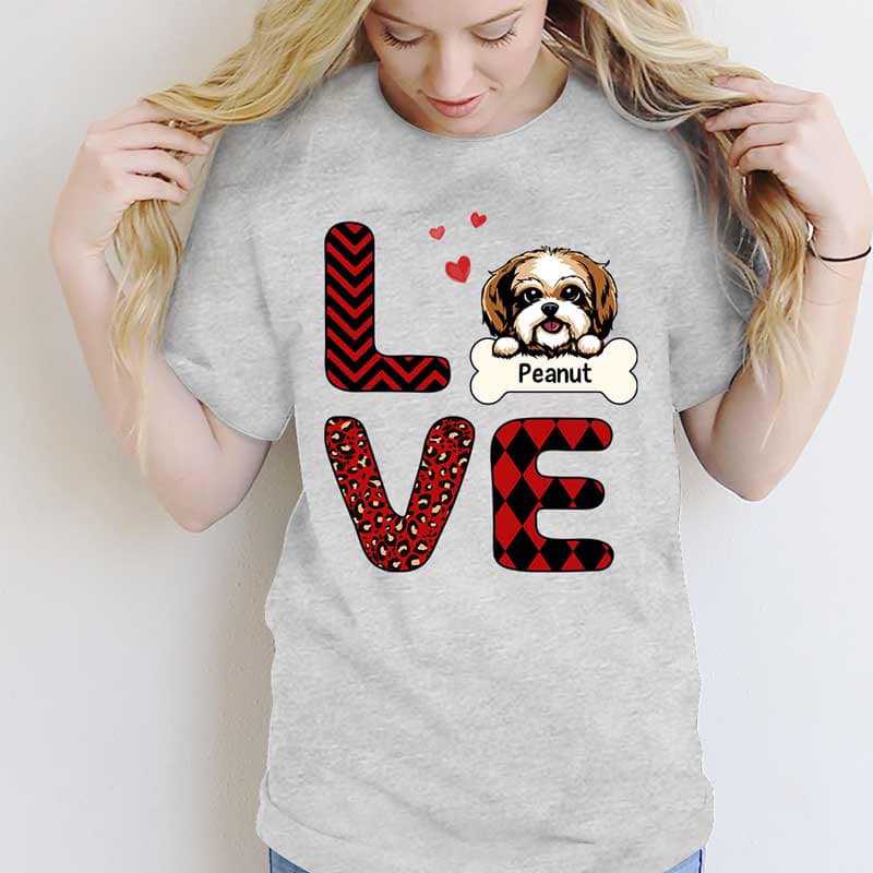 Red Pattern Stacked Love Peeking Dog Personalized Shirt