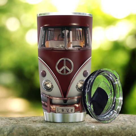 Red Retro Hippie Van Personalized Kd2 Stainless Steel Tumbler, Personalized Tumblers, Tumbler Cups, Custom Tumblers