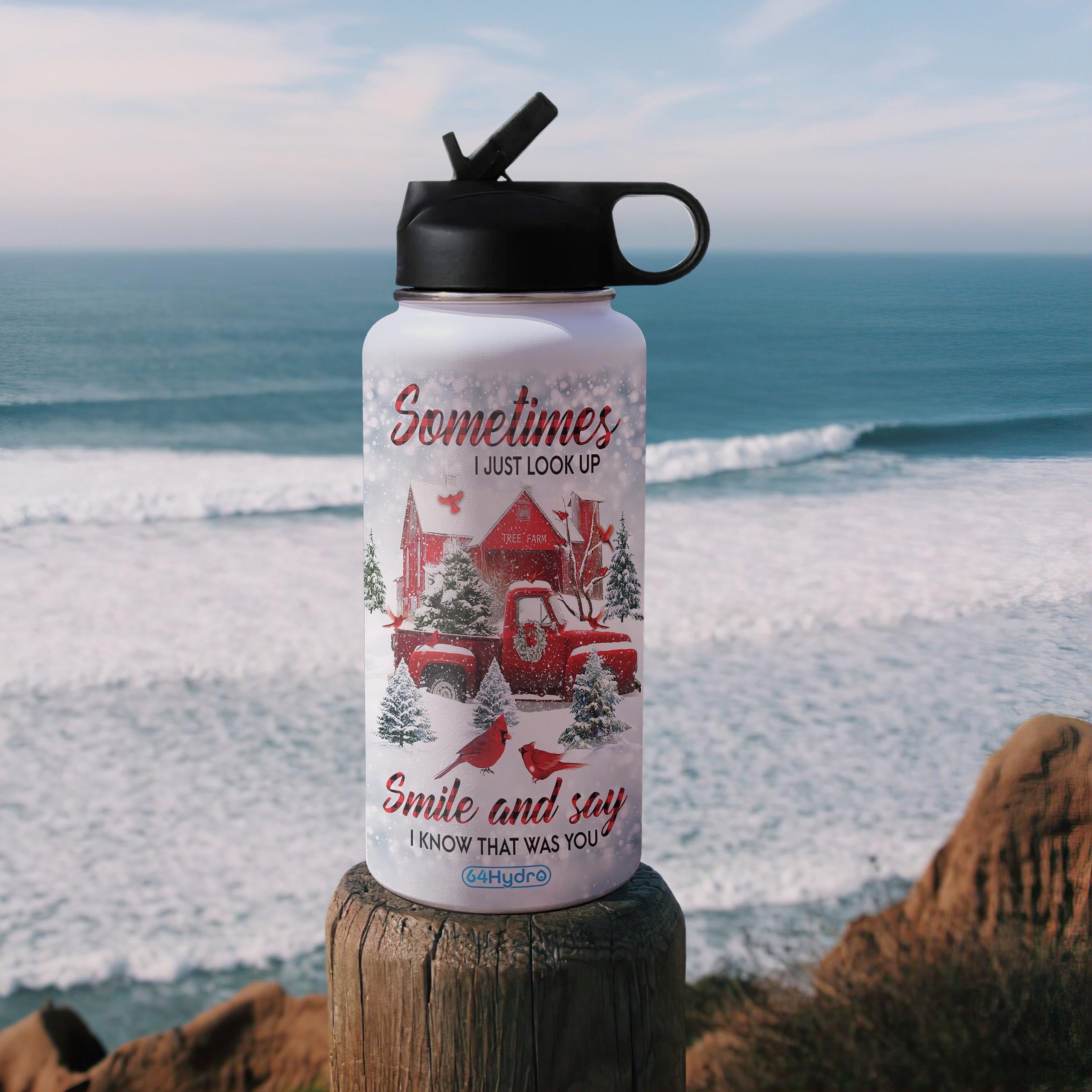 Red Truck Personalized Htq1911014 Stainless Steel Bottle With Straw Lid