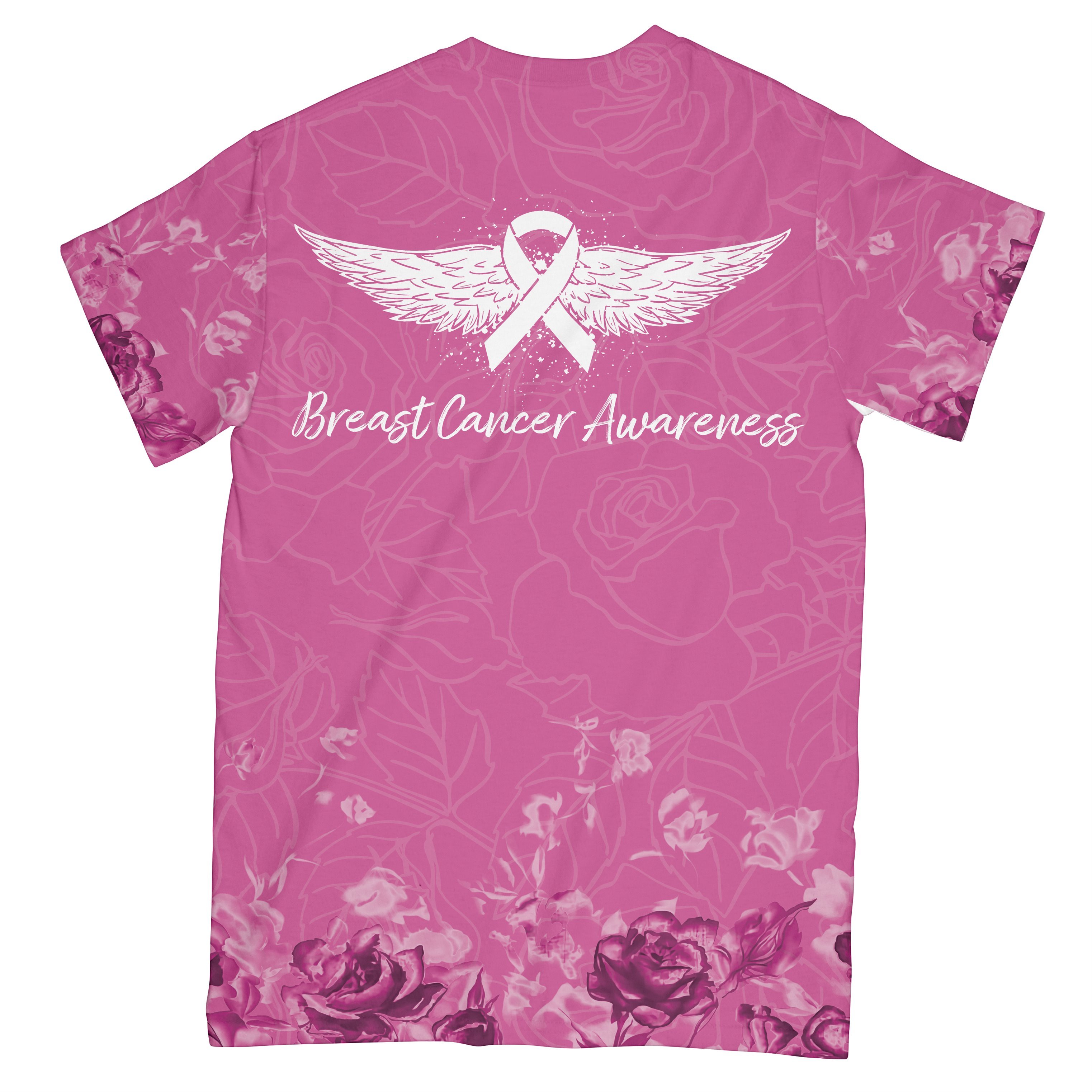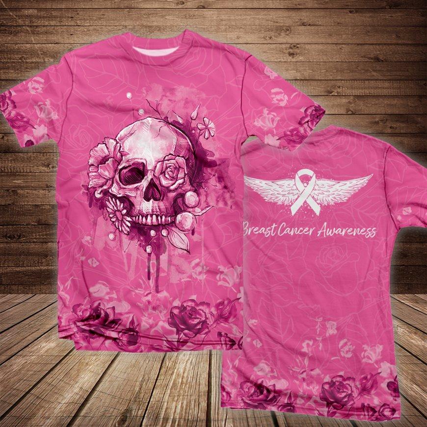 Rose Skull Pink Breast Cancer Awareness All Over Print T-Shirt, Support Gift For Breast Cancer