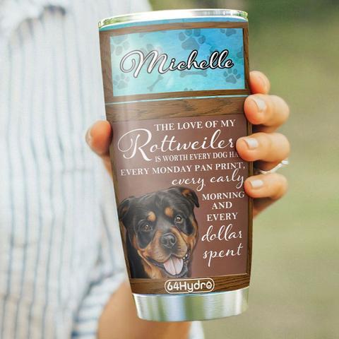 Rottweiler Personalized Stainless Steel Tumbler, Personalized Tumblers, Tumbler Cups, Custom Tumblers