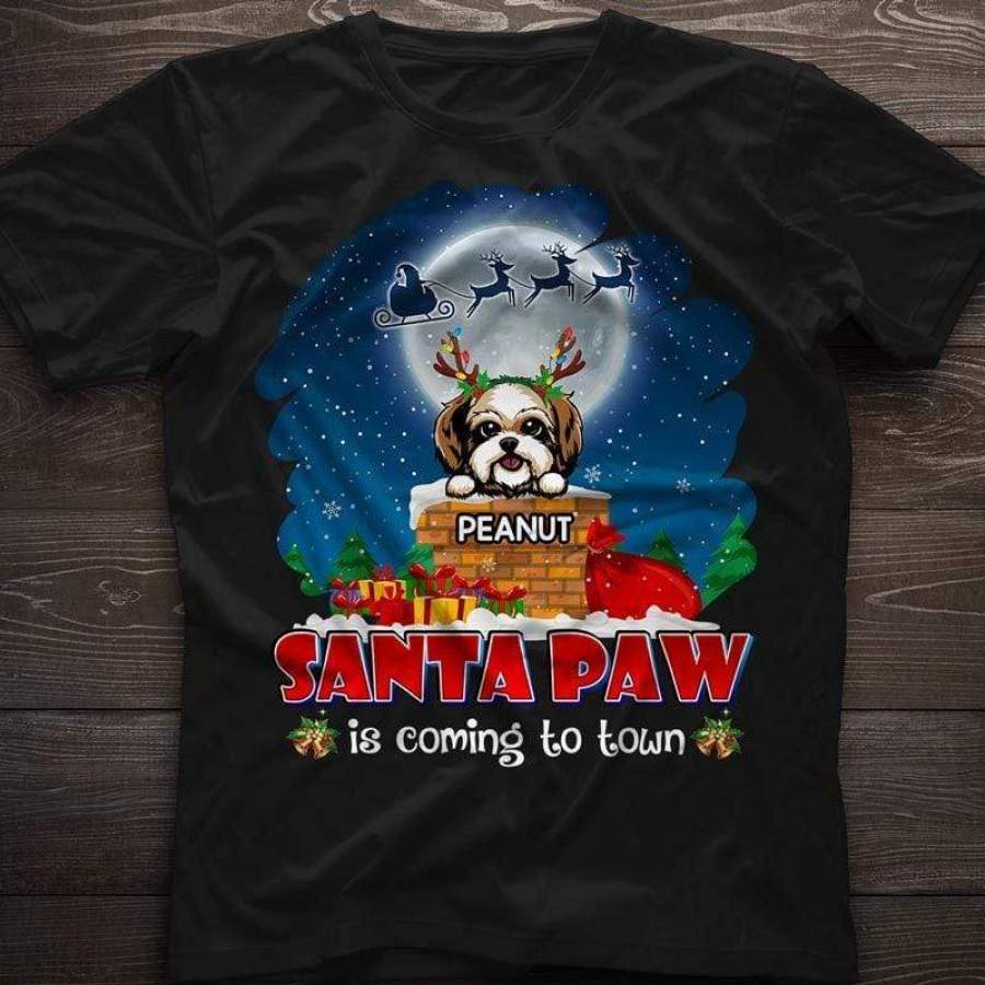Santa Paw Is Coming Peeking Dog Christmas Personalized Shirt