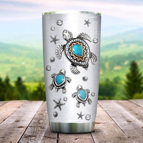 Sea Turtle Bohemian Jewelry Style Personalized Kd2 Stainless Steel Tumbler, Personalized Tumblers, Tumbler Cups, Custom Tumblers