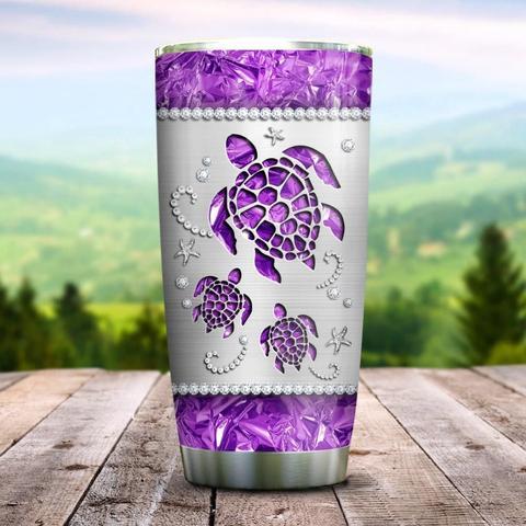 Sea Turtle Purple Personalized Kd2 Stainless Steel Tumbler, Personalized Tumblers, Tumbler Cups, Custom Tumblers