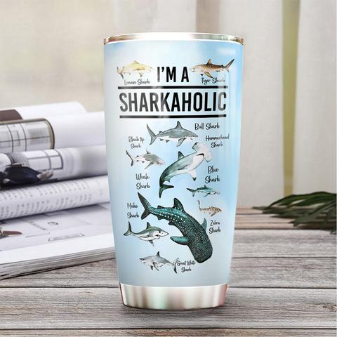 Sharkaholic Personalized Stainless Steel Tumbler, Personalized Tumblers, Tumbler Cups, Custom Tumblers