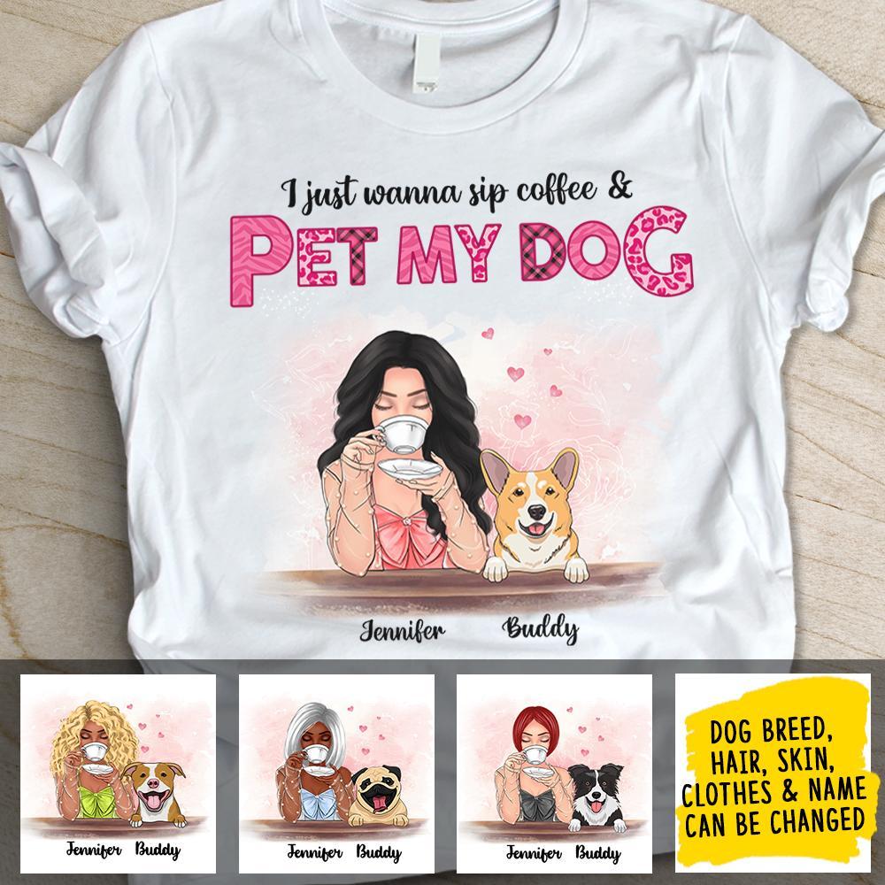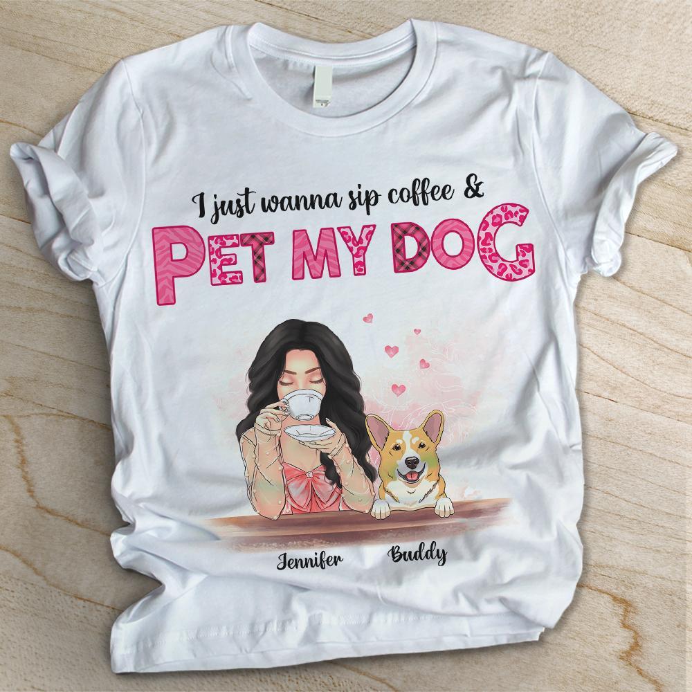 Sip My Coffee And Pet My Dogs – Personalized Custom Unisex T-Shirt