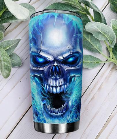 Skull Blue Fire Personalized Kd2 Stainless Steel Tumbler, Personalized Tumblers, Tumbler Cups, Custom Tumblers