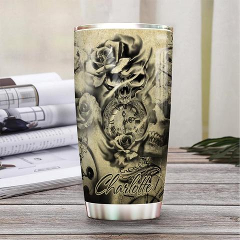 Skull Rose Personalized Stainless Steel Tumbler, Personalized Tumblers, Tumbler Cups, Custom Tumblers