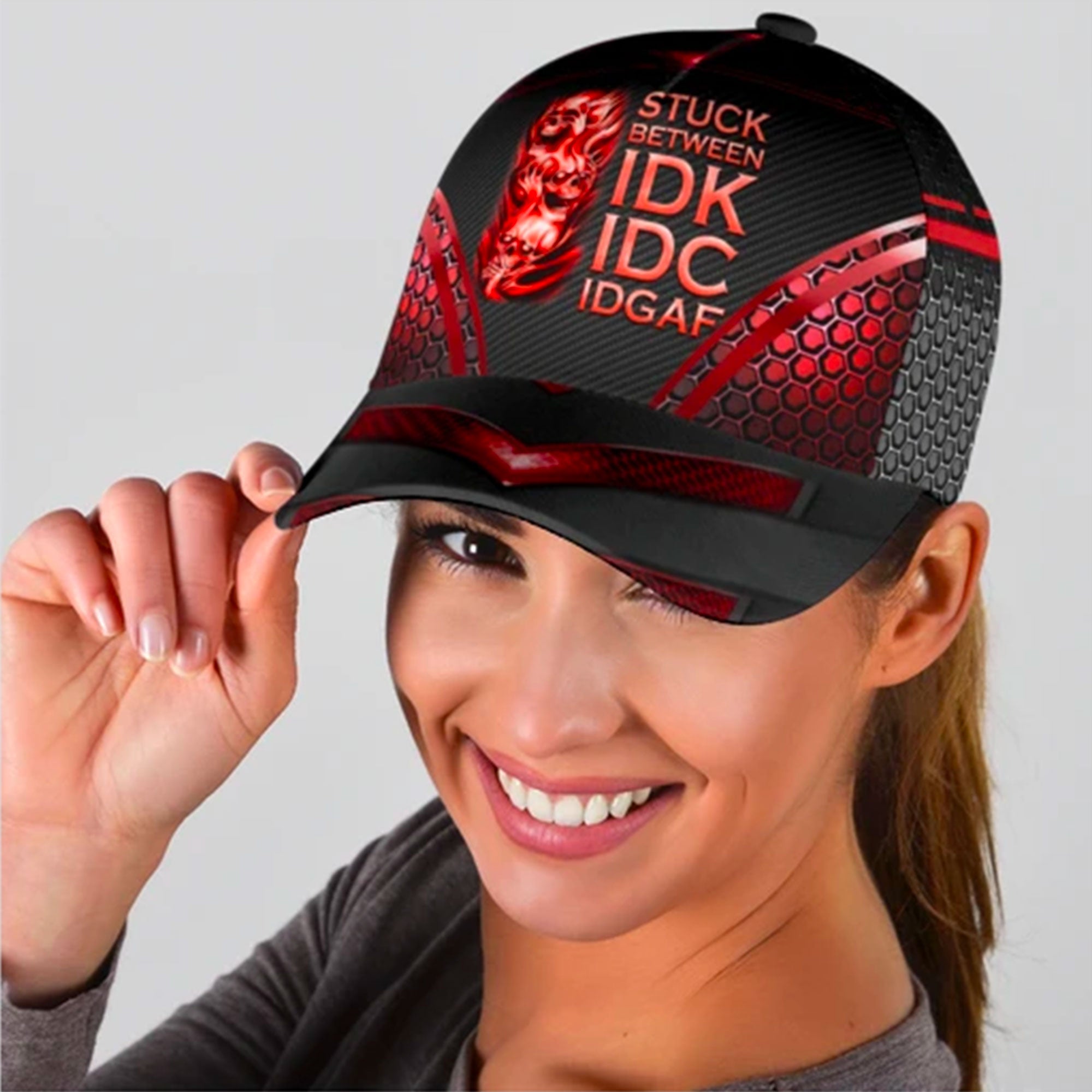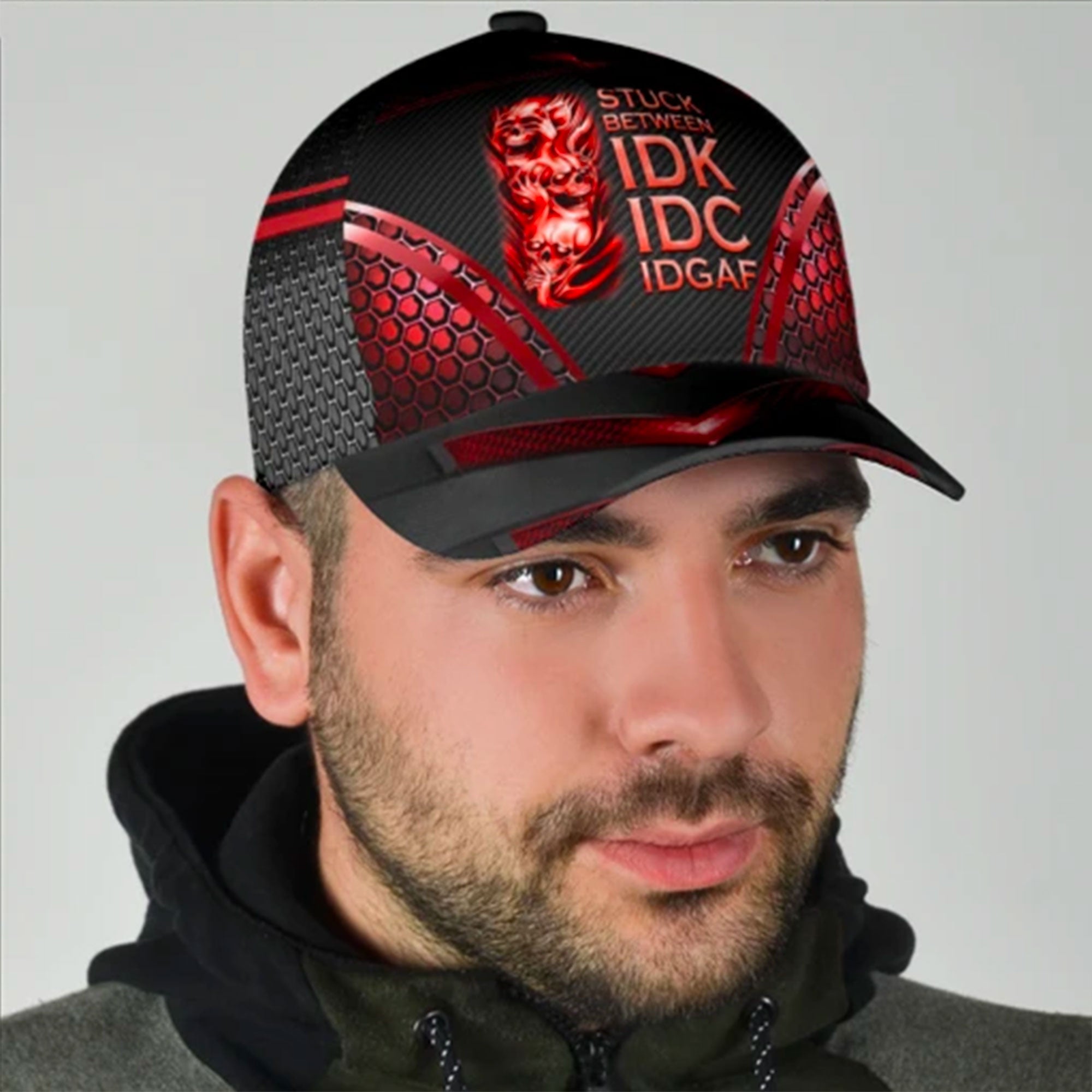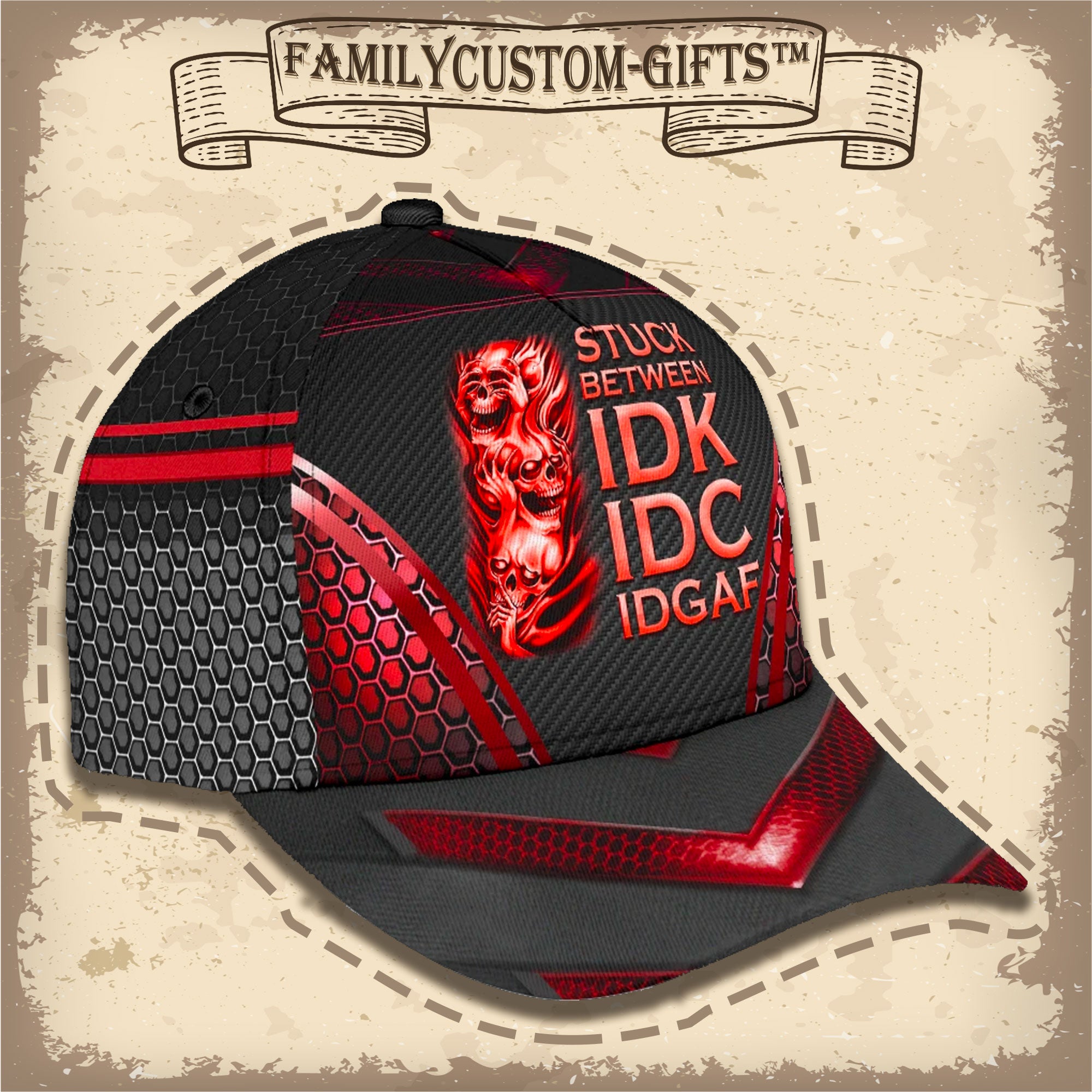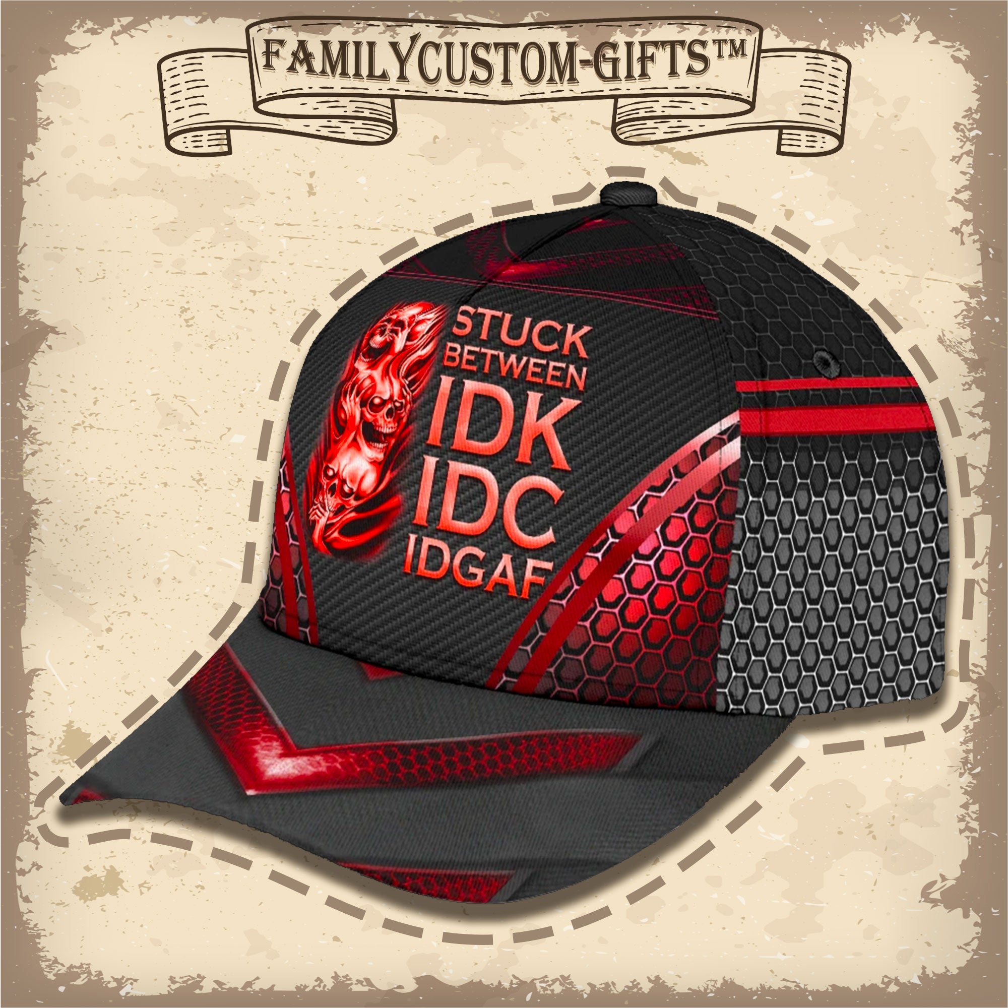 Skull Stuck Between Idk Idc And Idgaf Custom Hats For Men & Women 3D Prints Personalized Baseball Caps
