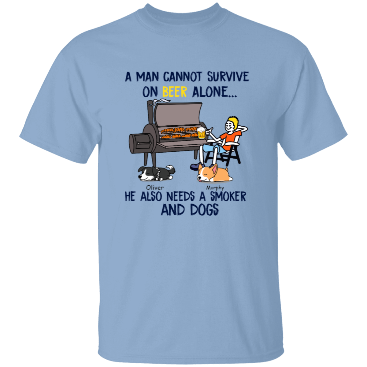 Sleeping Dog, A Man Cannot Survive On Beer Alone He Also Needs A Smoker And Dogs Personalized T Shirt HQ