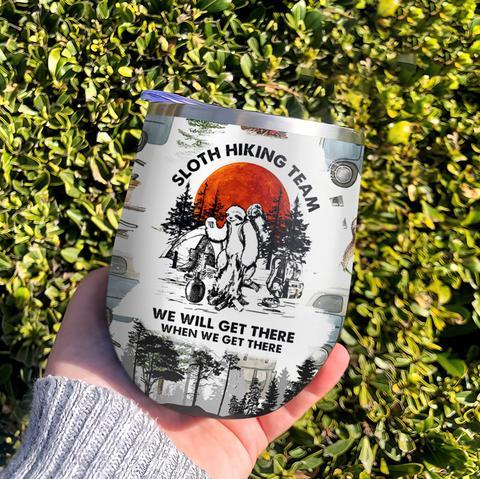 Sloth Hiking Team We Will Get There Wine Tumbler, Personalized Tumblers, Tumbler Cups, Custom Tumblers