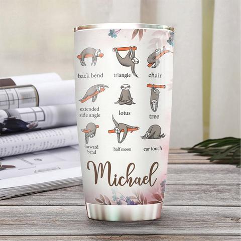 Sloth Yoga Personalized Stainless Steel Tumbler, Personalized Tumblers, Tumbler Cups, Custom Tumblers