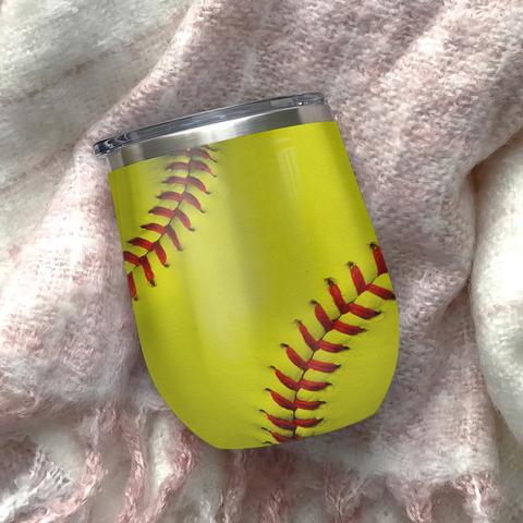 Softball Ball Leather Style Wine Tumbler, Personalized Tumblers, Tumbler Cups, Custom Tumblers