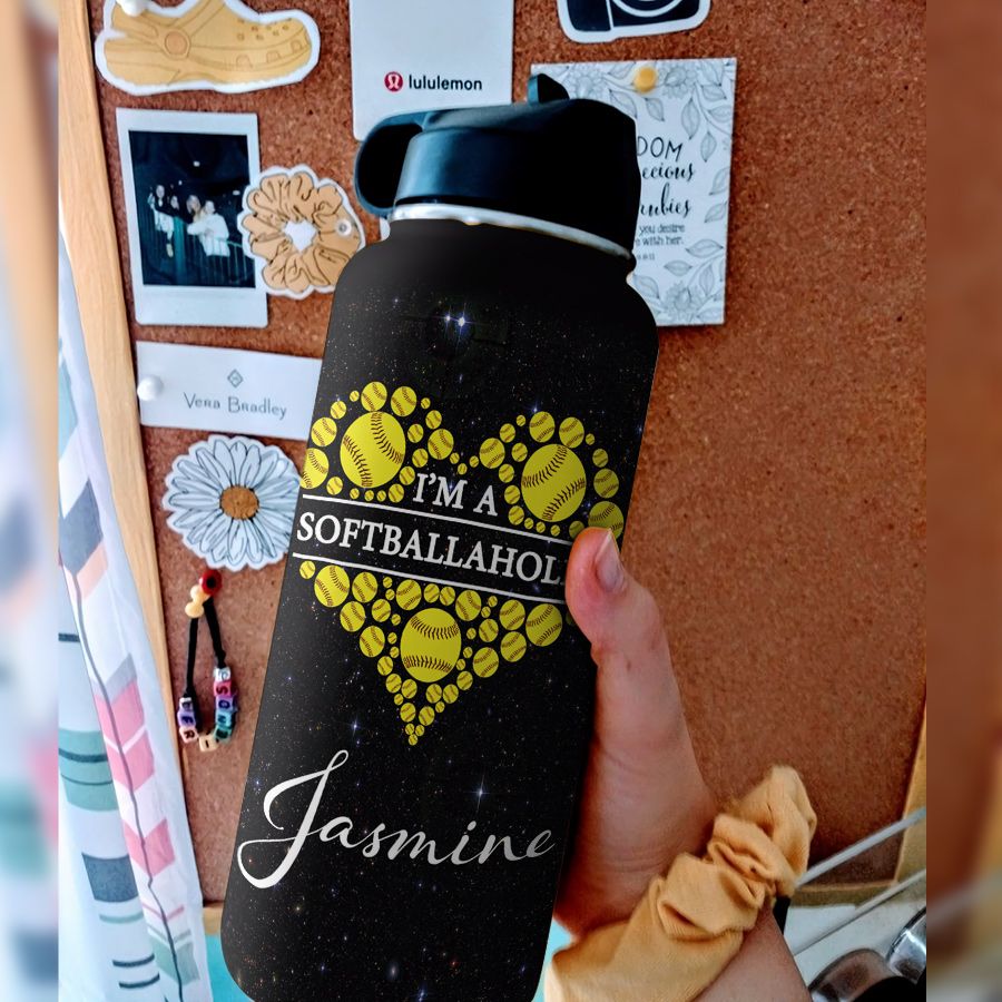 Softball Personalized Dnr0211010 Stainless Steel Bottle With Straw Lid