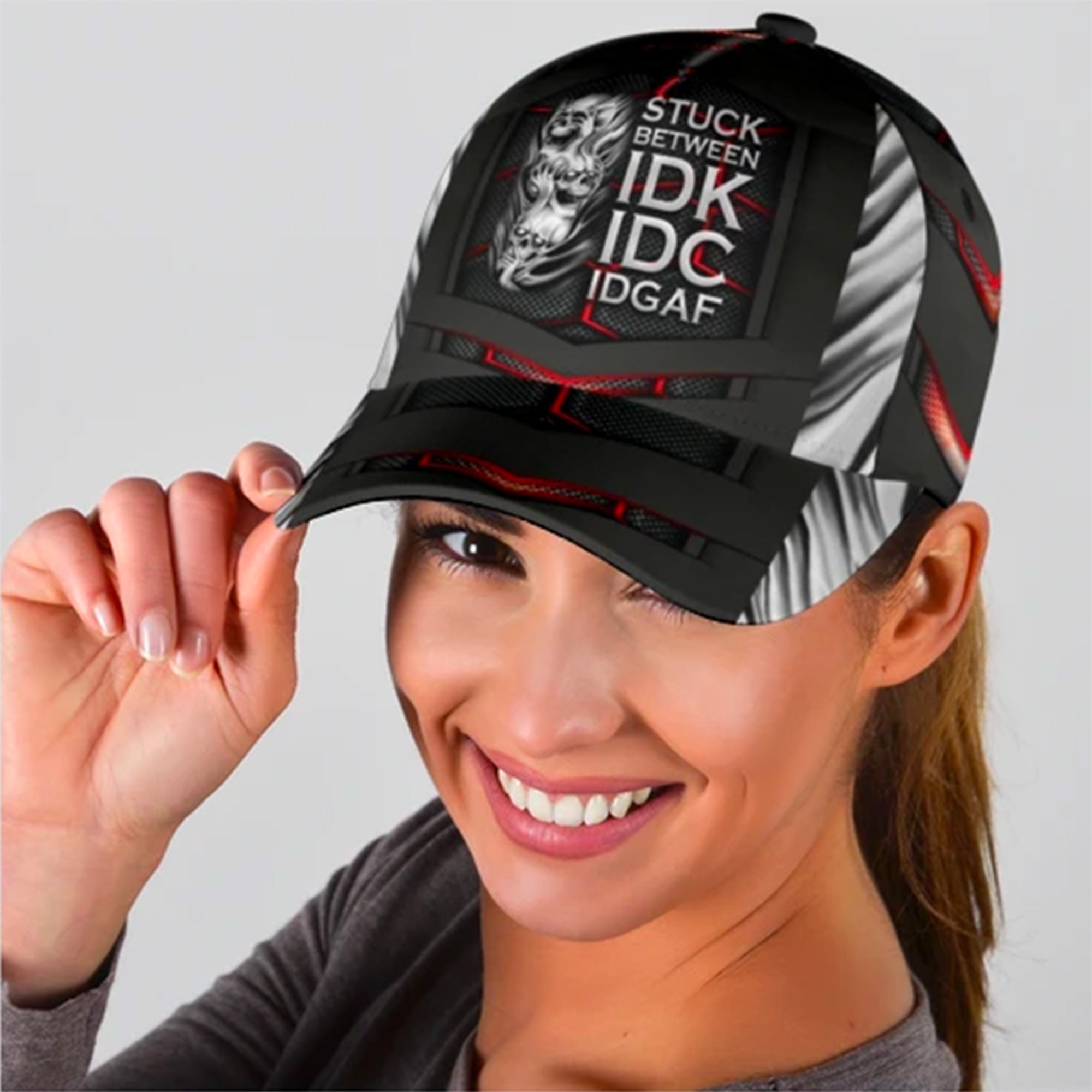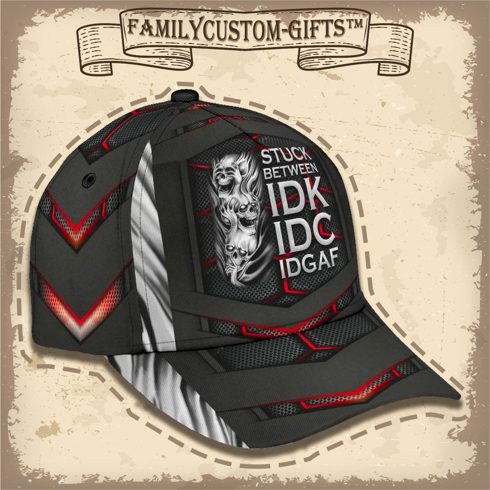 Stuck Between Idk Idc And Idgaf Skull Custom Hats For Men & Women 3D Prints Personalized Baseball Caps