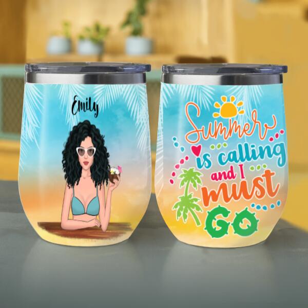 Summer Is Calling And I Must Go Gift For Girls Awesome Beach Trip Custom Style & Name Personalized Wine Tumbler