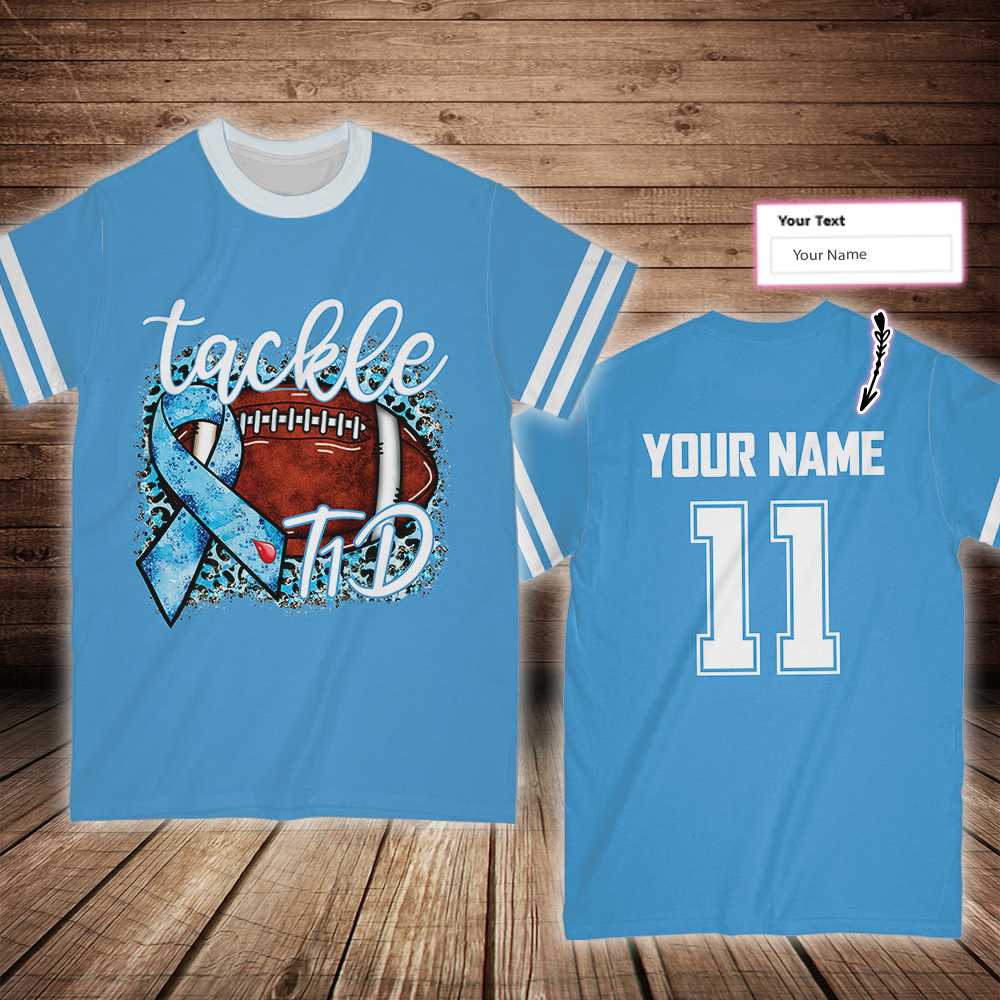Tackle T1D Custom All Over Print T-Shirt, Personalized Diabetes Gift For Football Fans, Diabetes Awareness Shirt