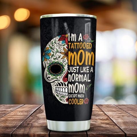 Tattooed Mom Half Skull Personalized Kd2 Stainless Steel Tumbler, Personalized Tumblers, Tumbler Cups, Custom Tumblers