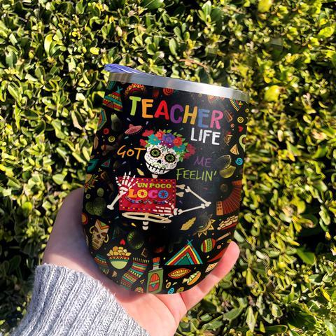 Teacher Life Got Me Feeling Un Poco Loco Skull Teacher Day Of The Dead Pattern Teacher Gift Wine Tumbler, Personalized Tumblers, Tumbler Cups, Custom Tumblers