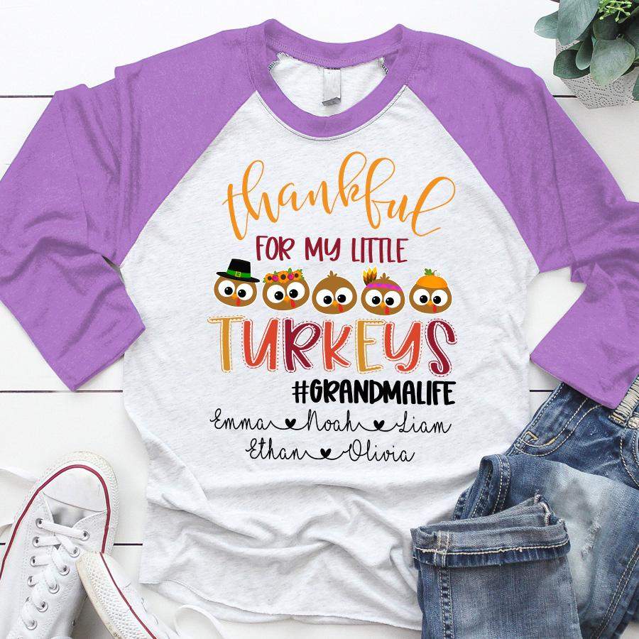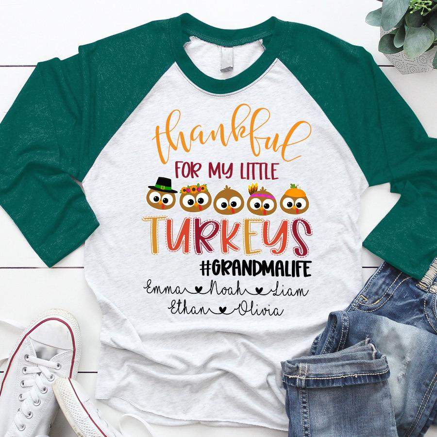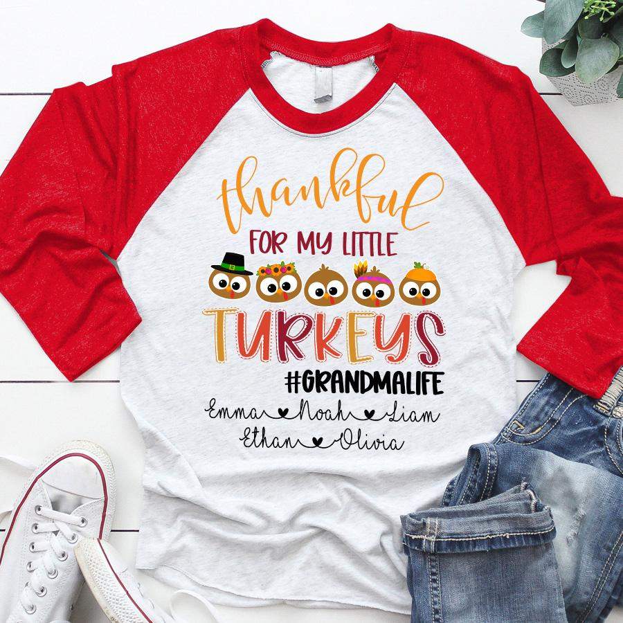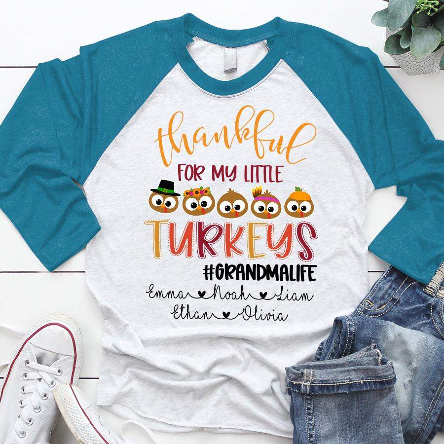 Thankful For My Little Turkeys-Grandmalife | Personalized Baseball T-shirt