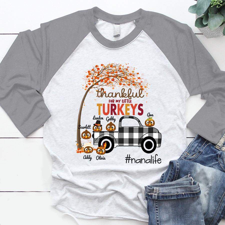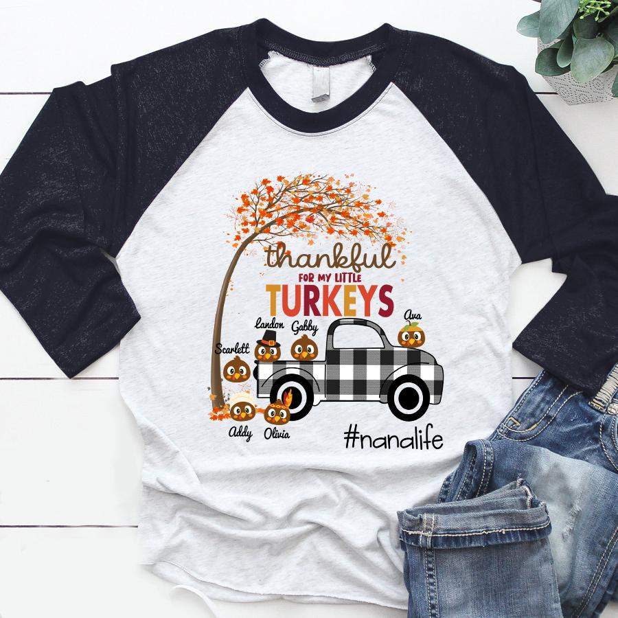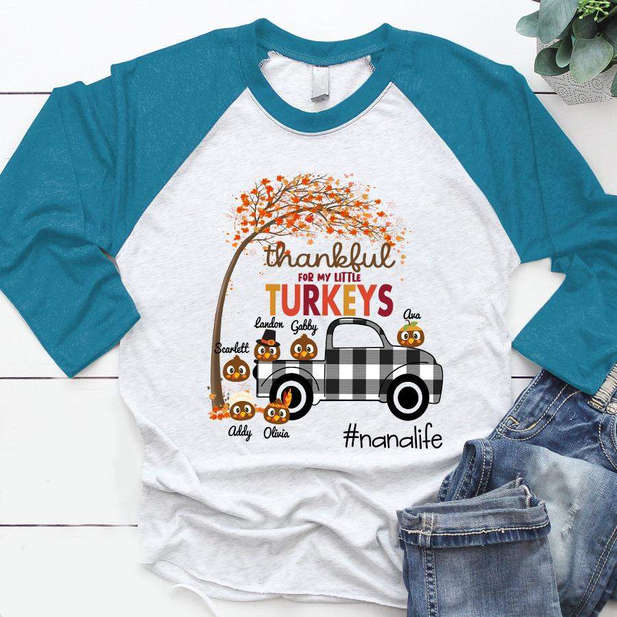 Thankful For My Little Turkeys – Nana Life | Personalized Baseball T-shirt