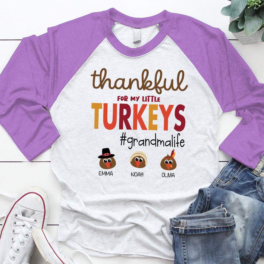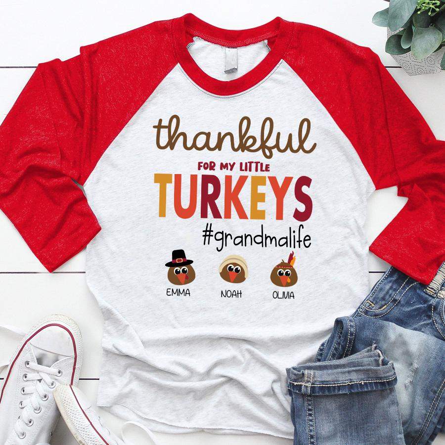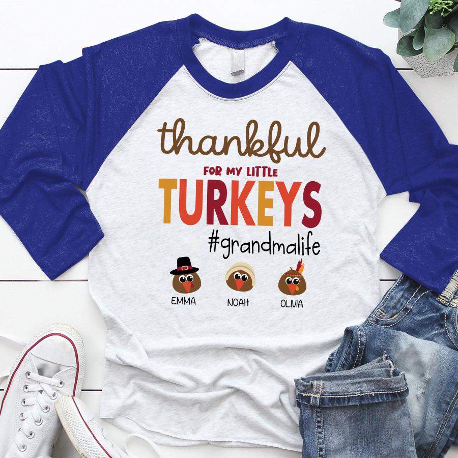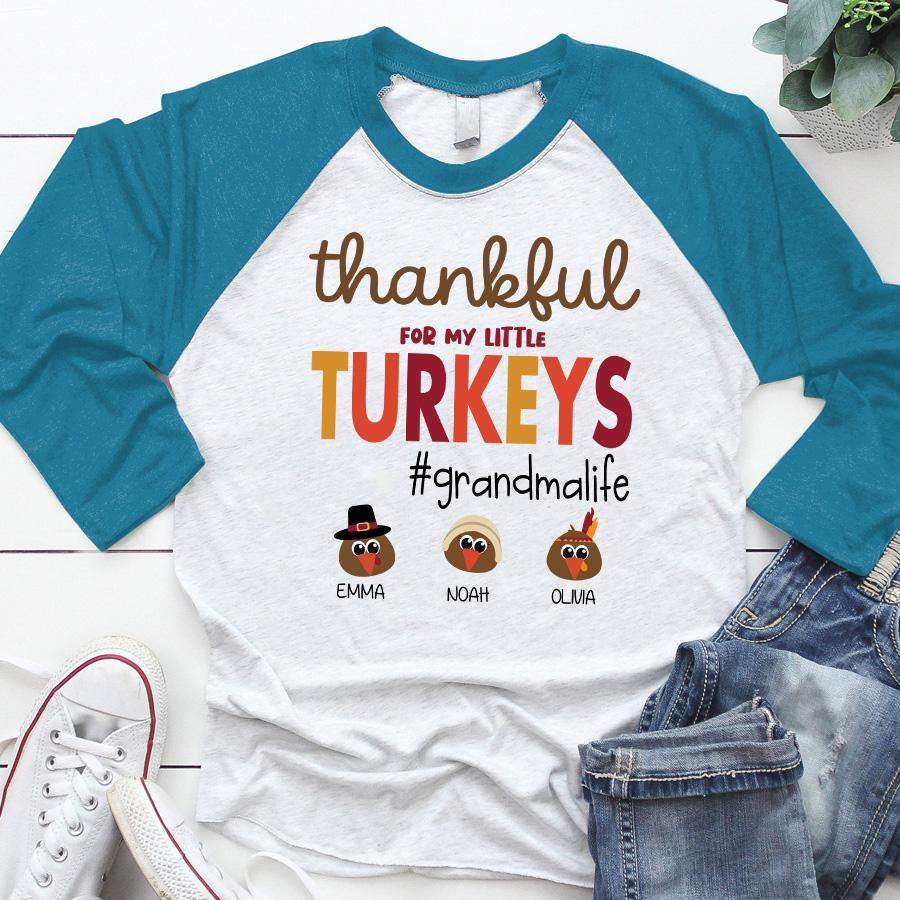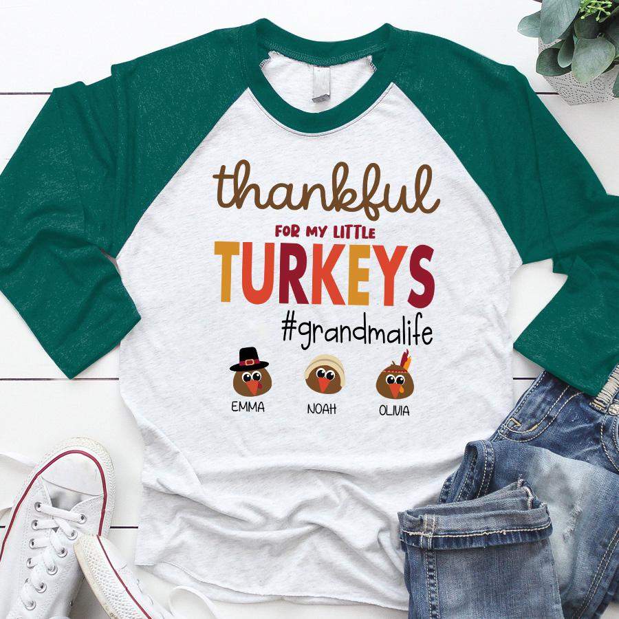 Thankful For My Little Turkeys | Personalized Baseball T-shirt