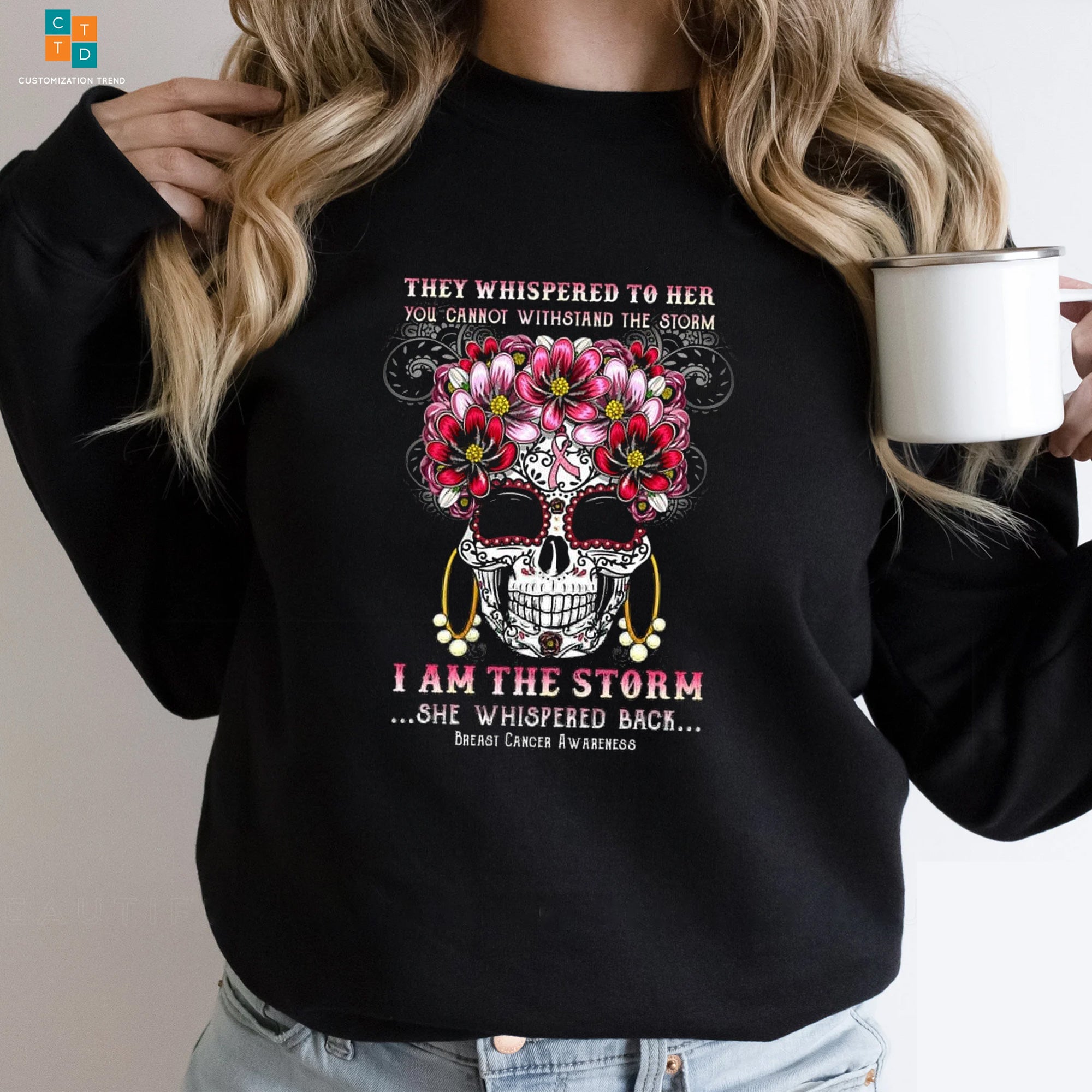 They Whispered To Her You Cannot Withstand The Storm Skullcap Breast Cancer Awareness Hoodie, Shirt