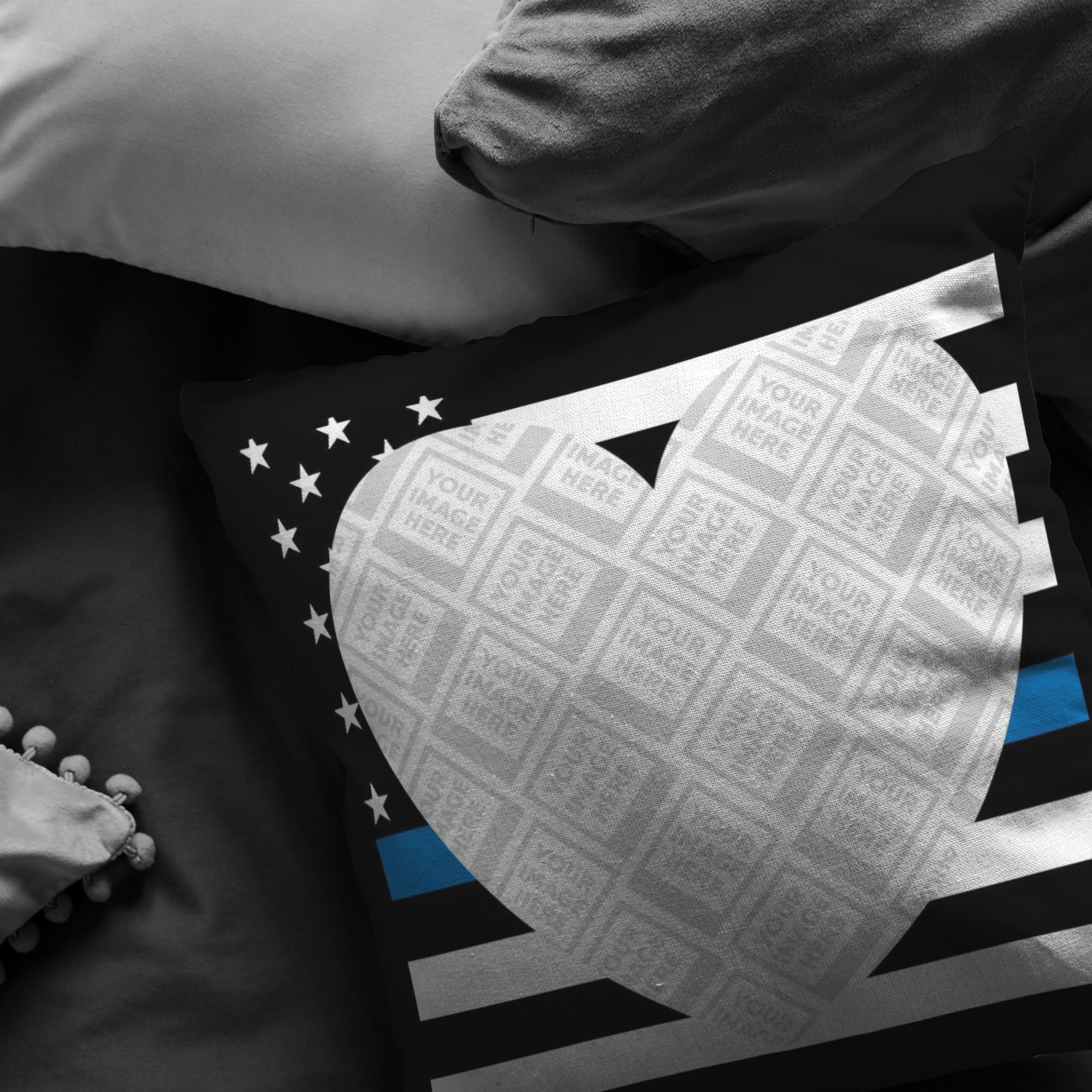 Thin Blue Line Usa Heart Personalized Photo Frame Pillow
