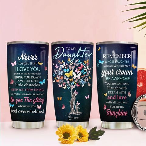 To My Daughter Butterfly Stainless Steel Tumbler, Personalized Tumblers, Tumbler Cups, Custom Tumblers