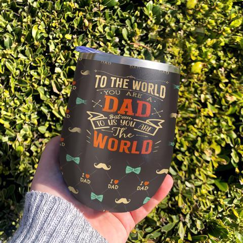To The World You Are A Dad But To Our Family You Are The World Gift For Dad Present For Father From Son Daughter Child Wine Tumbler, Personalized Tumblers, Tumbler Cups, Custom Tumblers