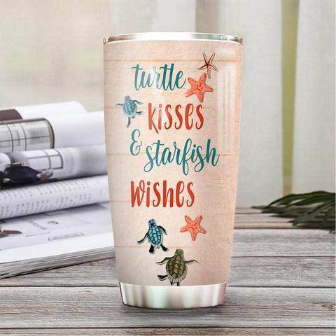 Turtle Kisses And Starfish Wishes Gift For Turtle Lover Present Idea For Turtle Lover Stainless Steel Tumbler, Personalized Tumblers, Tumbler Cups, Custom Tumblers