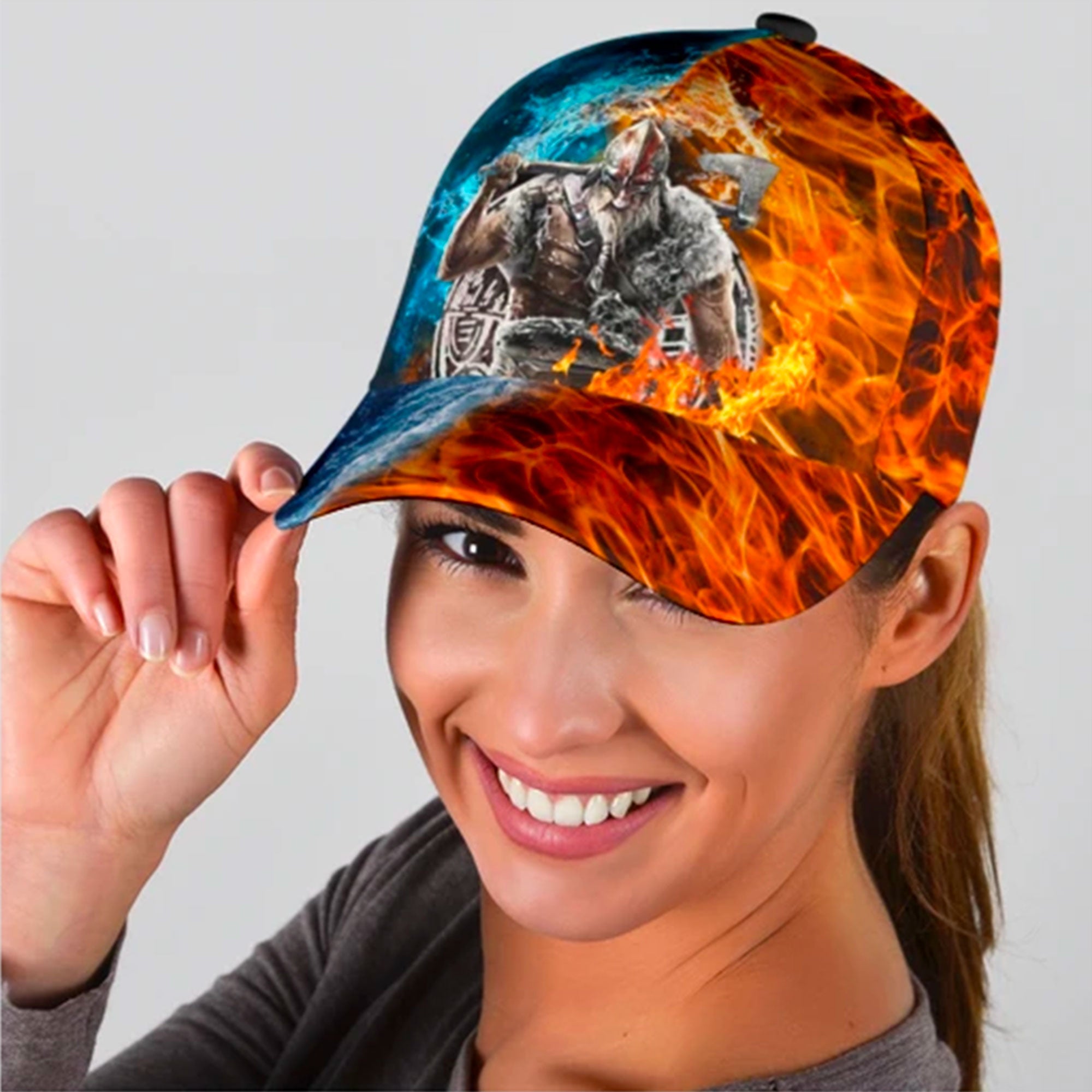 Viking Fire Water Custom Hats For Men & Women 3D Prints Personalized Baseball Caps