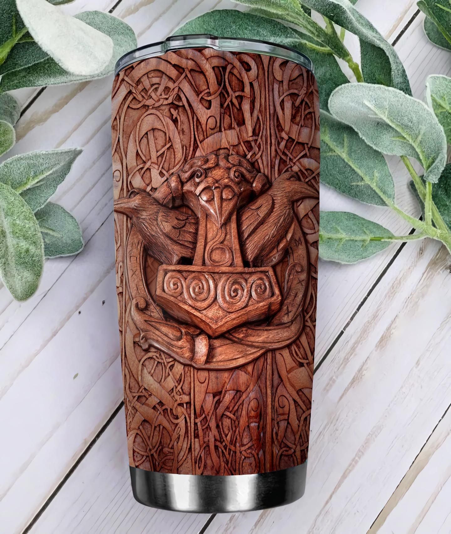 Viking Raven Odin Wood Style Personalized Kd2 Hnm0212008 Stainless Steel Tumbler