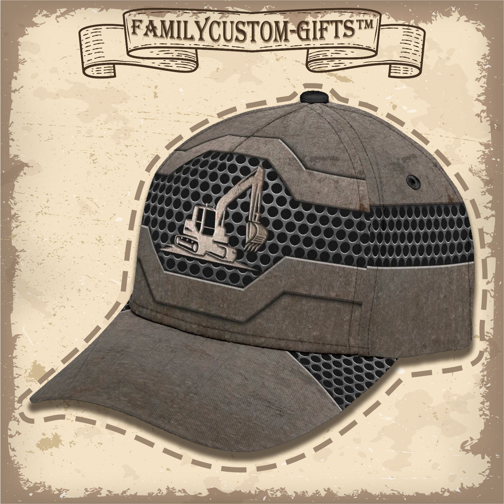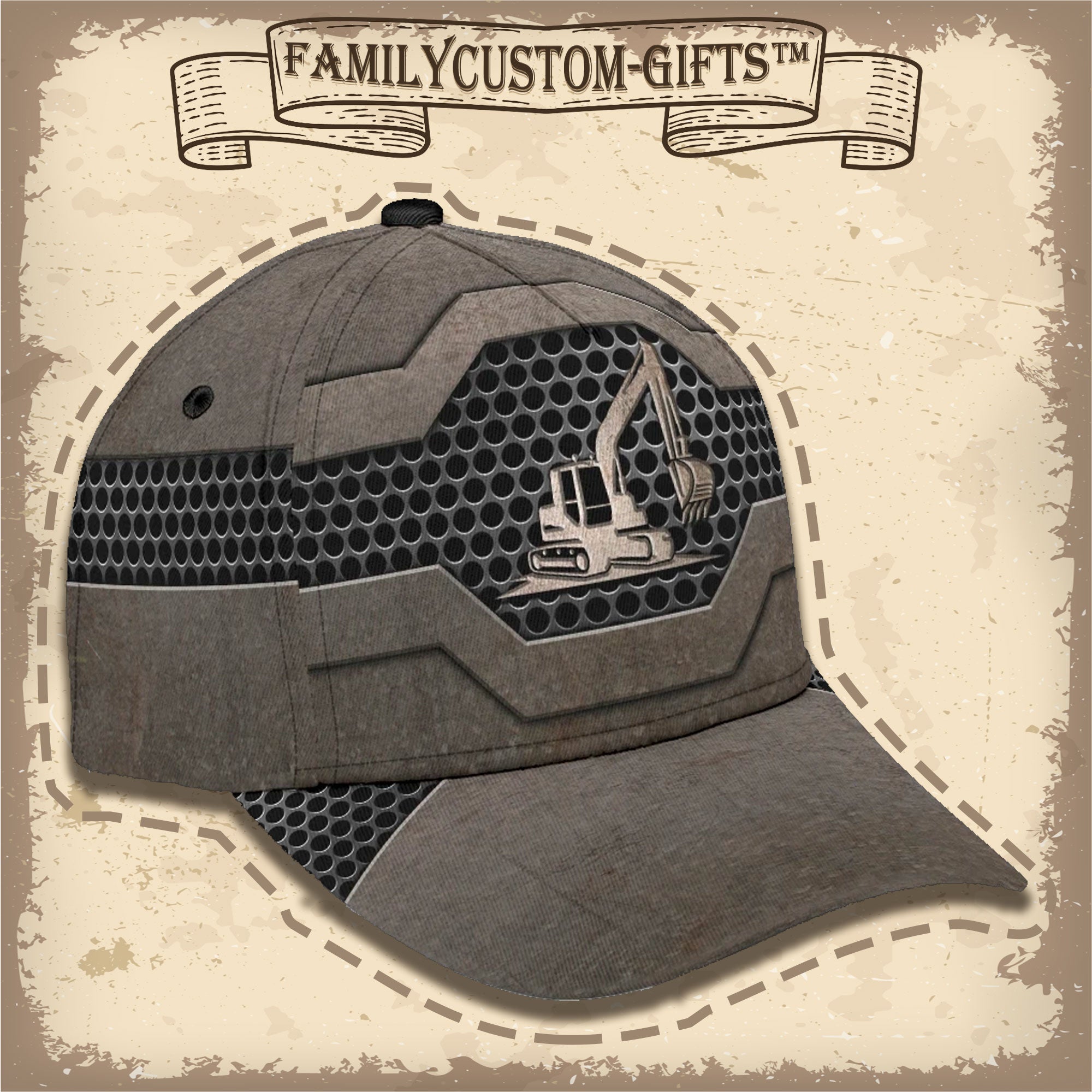 Vintage Excavator Custom Hats For Men & Women 3D Prints Personalized Baseball Caps